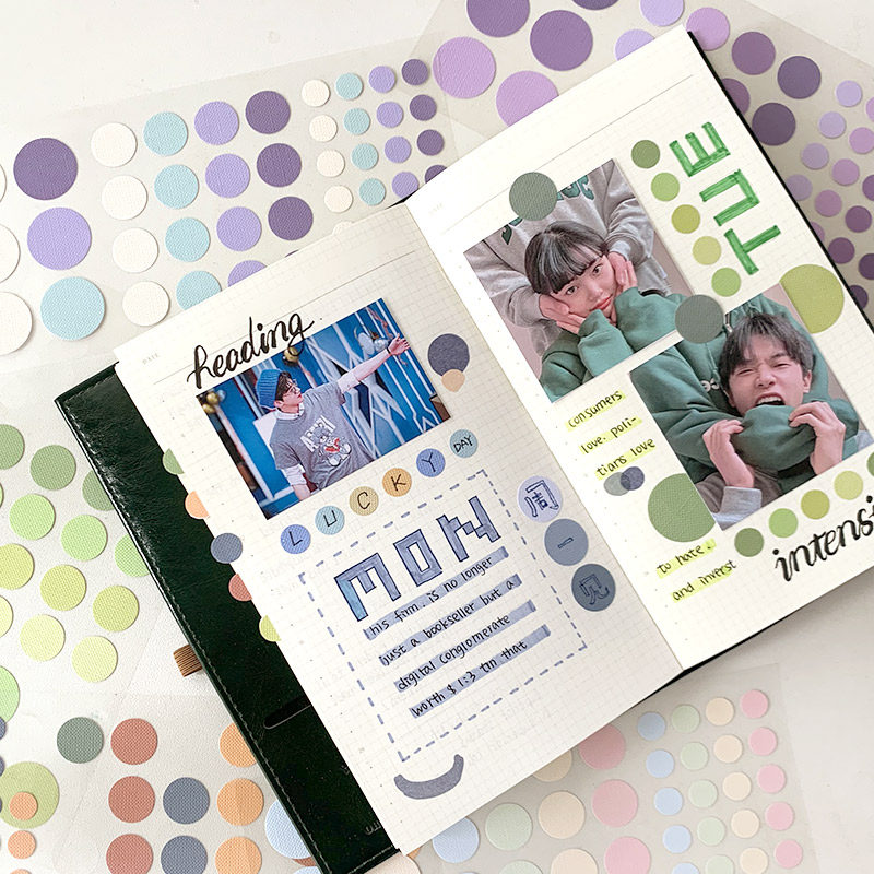 本字时多552枚可书写布纹圆点贴纸包重点标记圆形基础手帐账拼贴