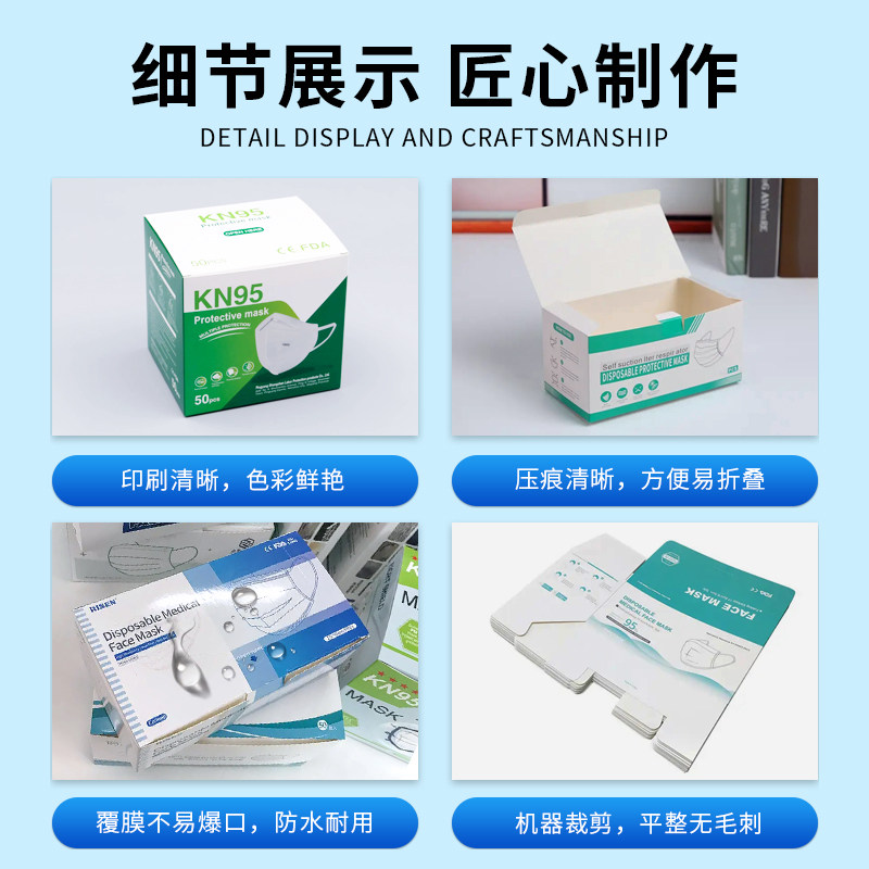 为您提供商品口罩包装 彩盒 盒定制一次性口罩盒纸卡空盒小批量印刷logo产品包装的详细介绍,