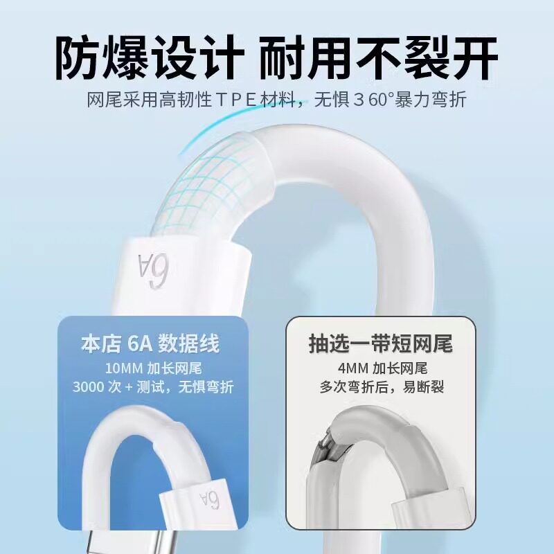 能适Typec数据线6A超级快充原装 适用tpyec充电线华为小米vivo安卓66W充电器线双typc荣耀手机tpc双头车载正品