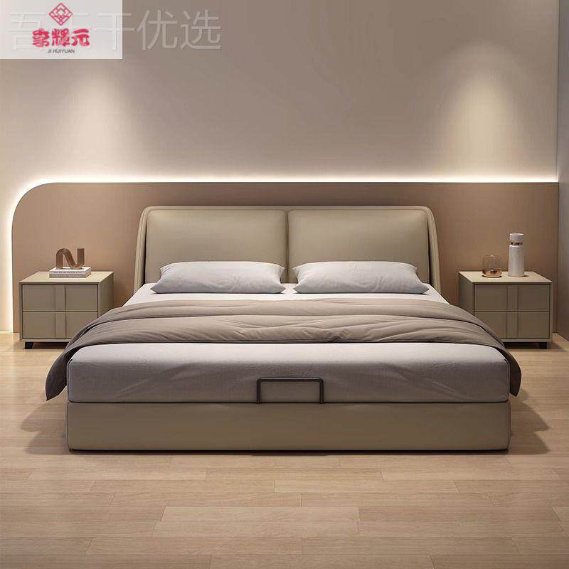 极简风皮简高端双真人极婚床轻奢现代小户型NHO简约储物床双人皮由