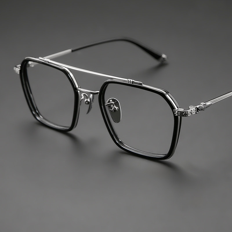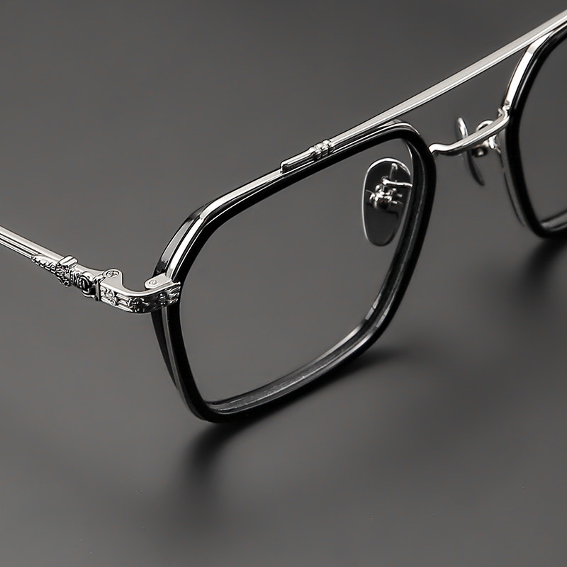 近视复古雕花双梁纯钛镜框可配度数防蓝光 木川私藏145mm眼镜男款由