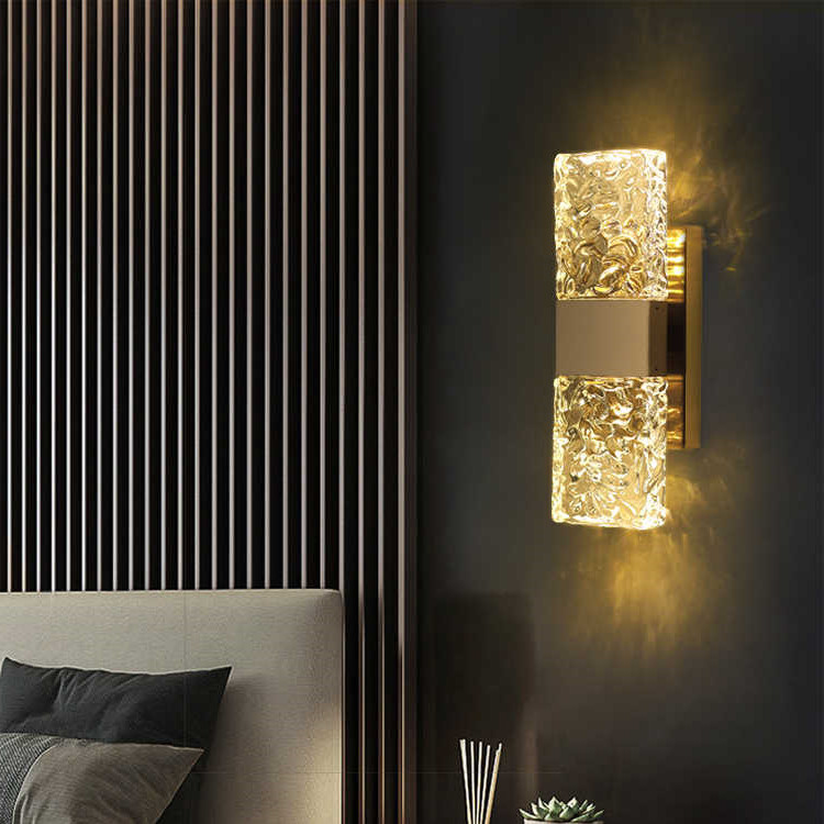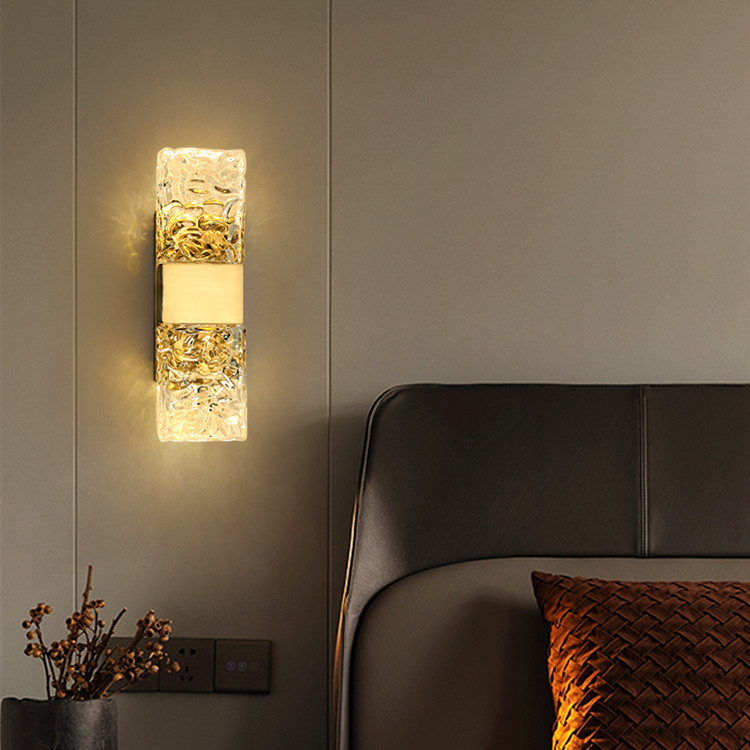 卧室壁灯床头灯现代轻奢电视背景墙灯过道楼梯创意水波纹玻璃壁灯