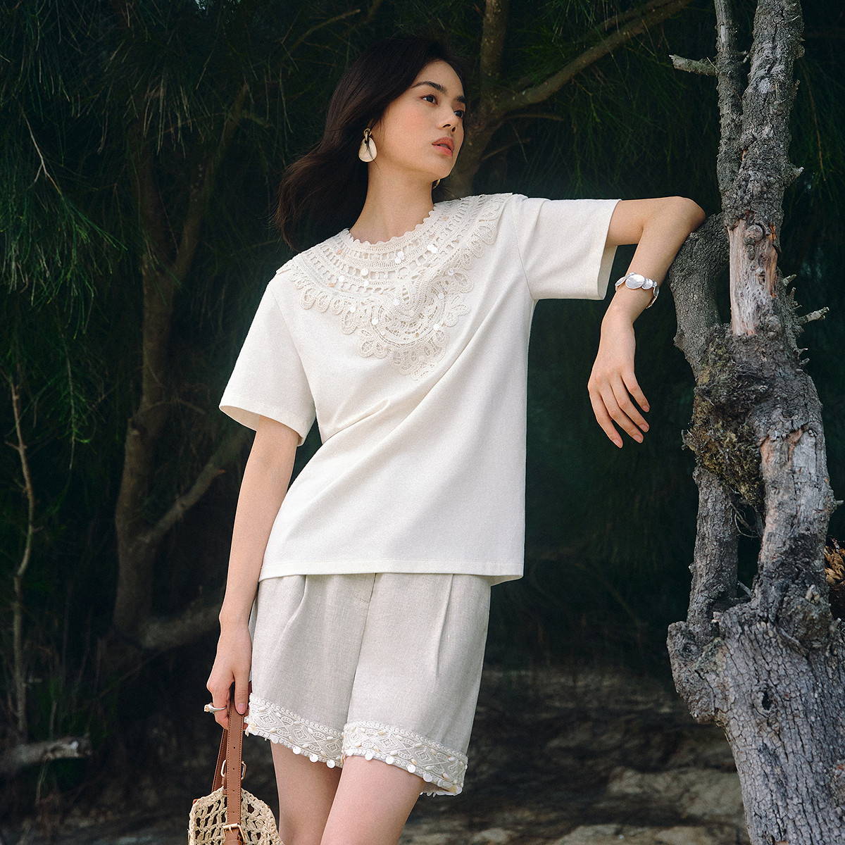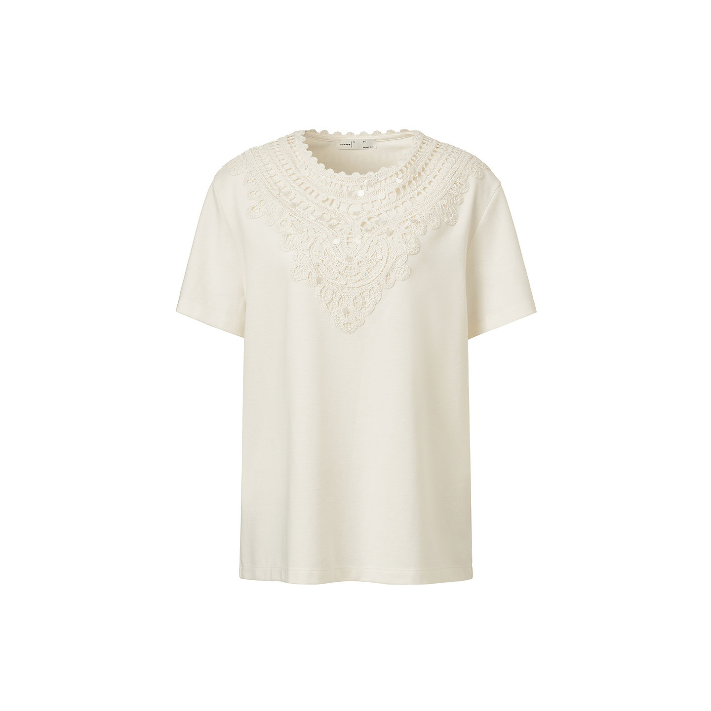 维格娜丝夏款 XUZHI联名 VGRASS女装 T恤 水溶蕾丝廓形白色短袖由