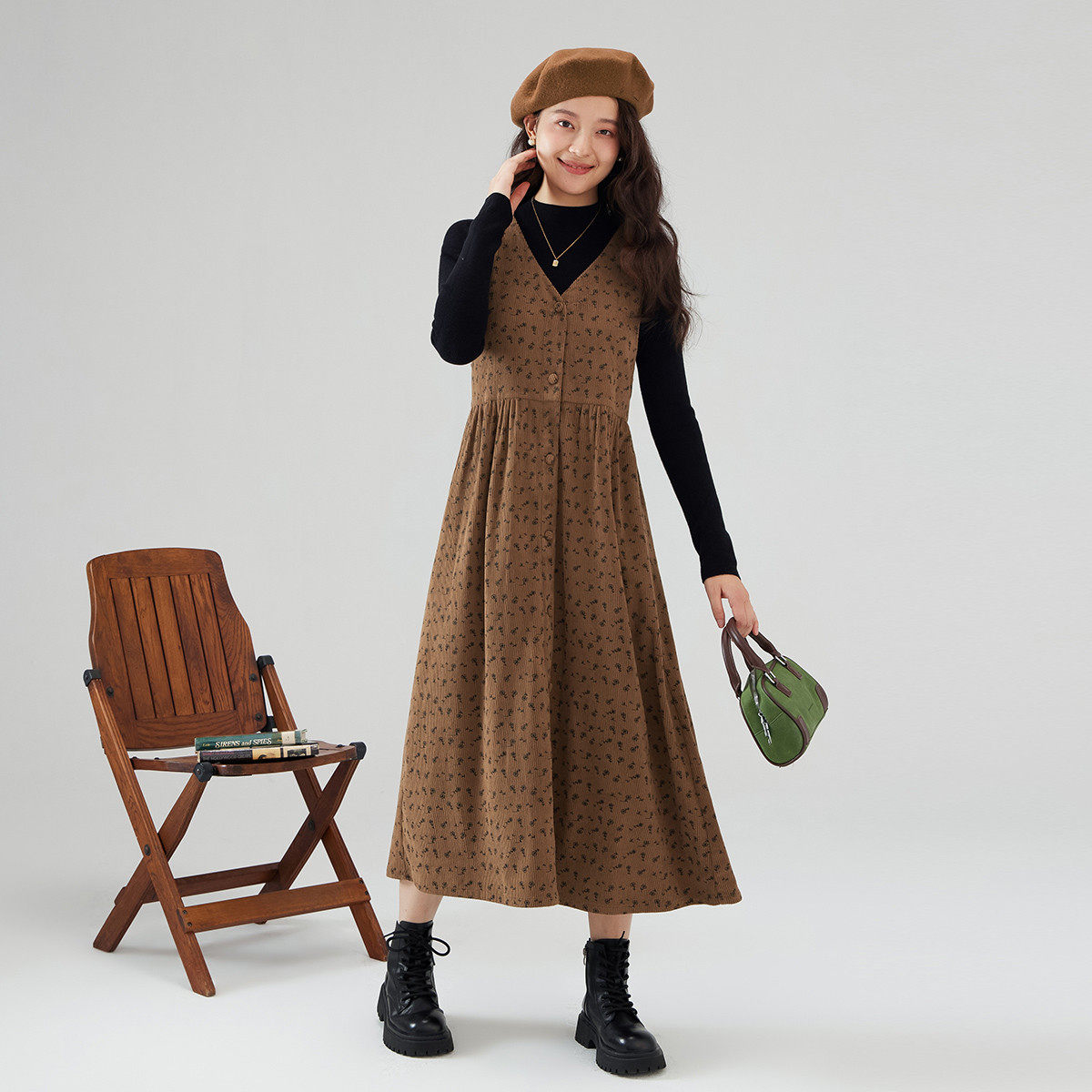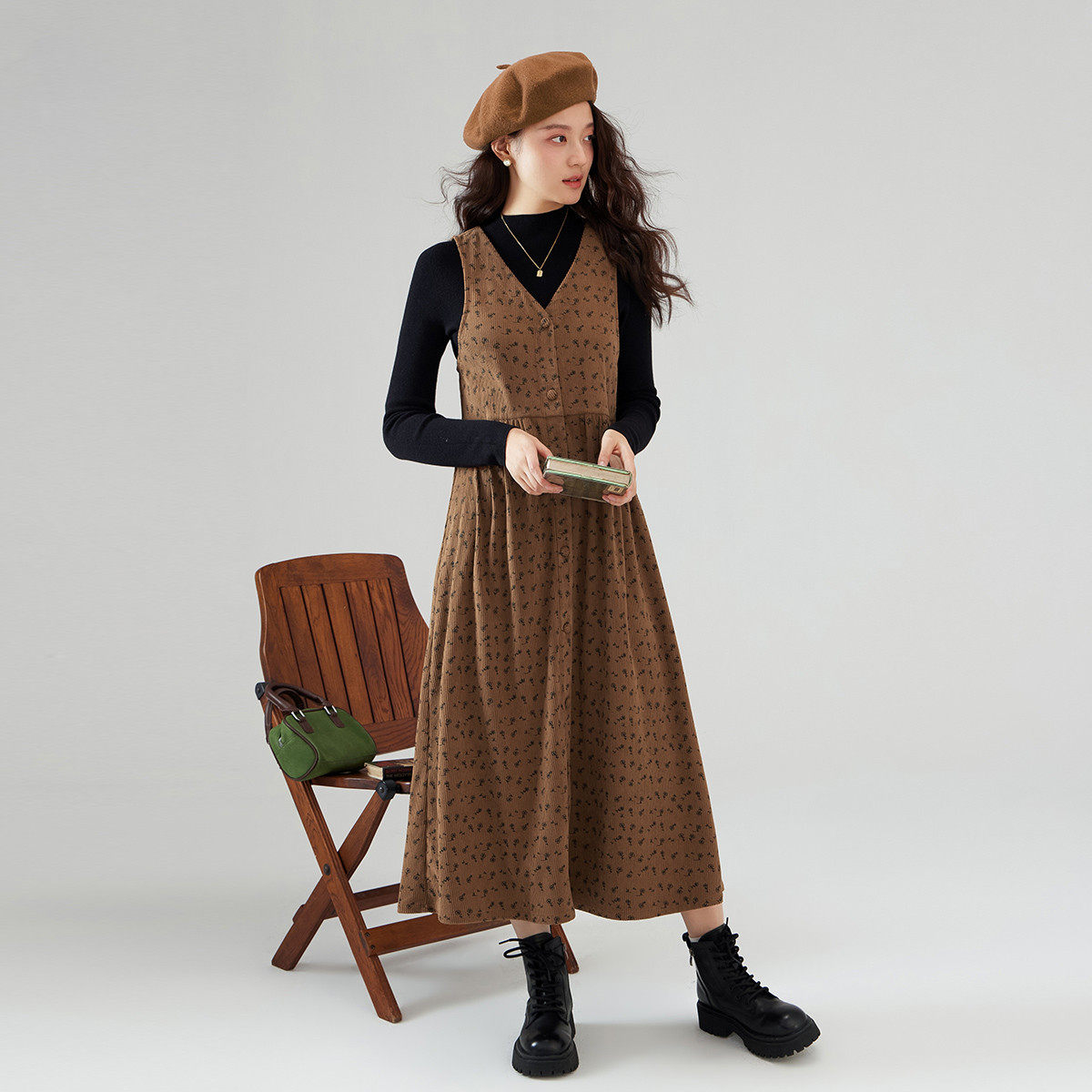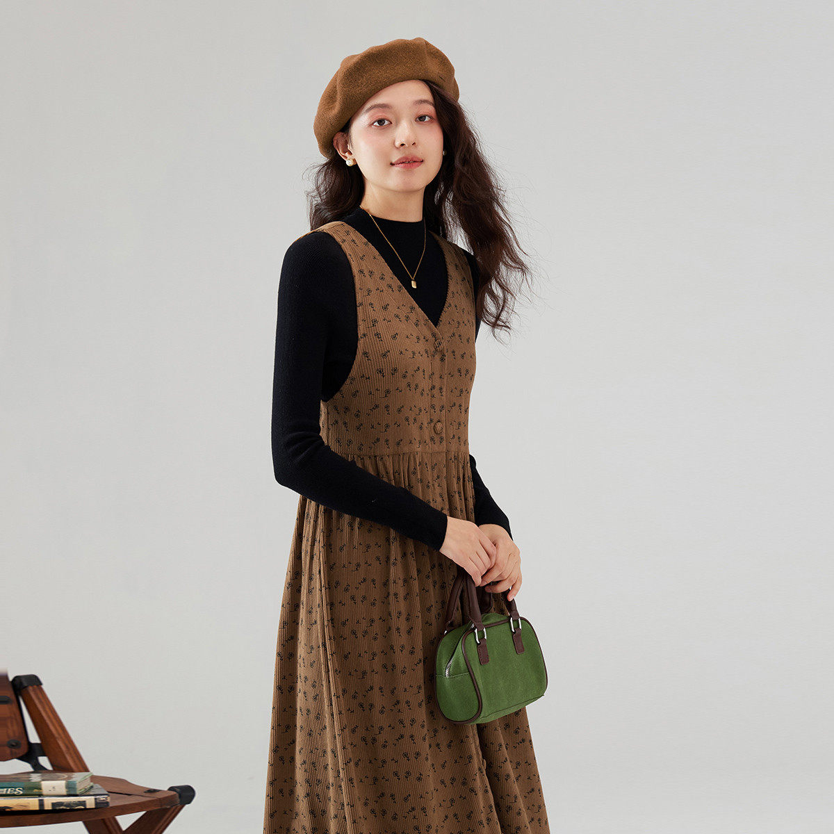 美拉德灯芯绒连衣裙女冬款 显瘦背心裙高级感气质长裙 more法式 one由