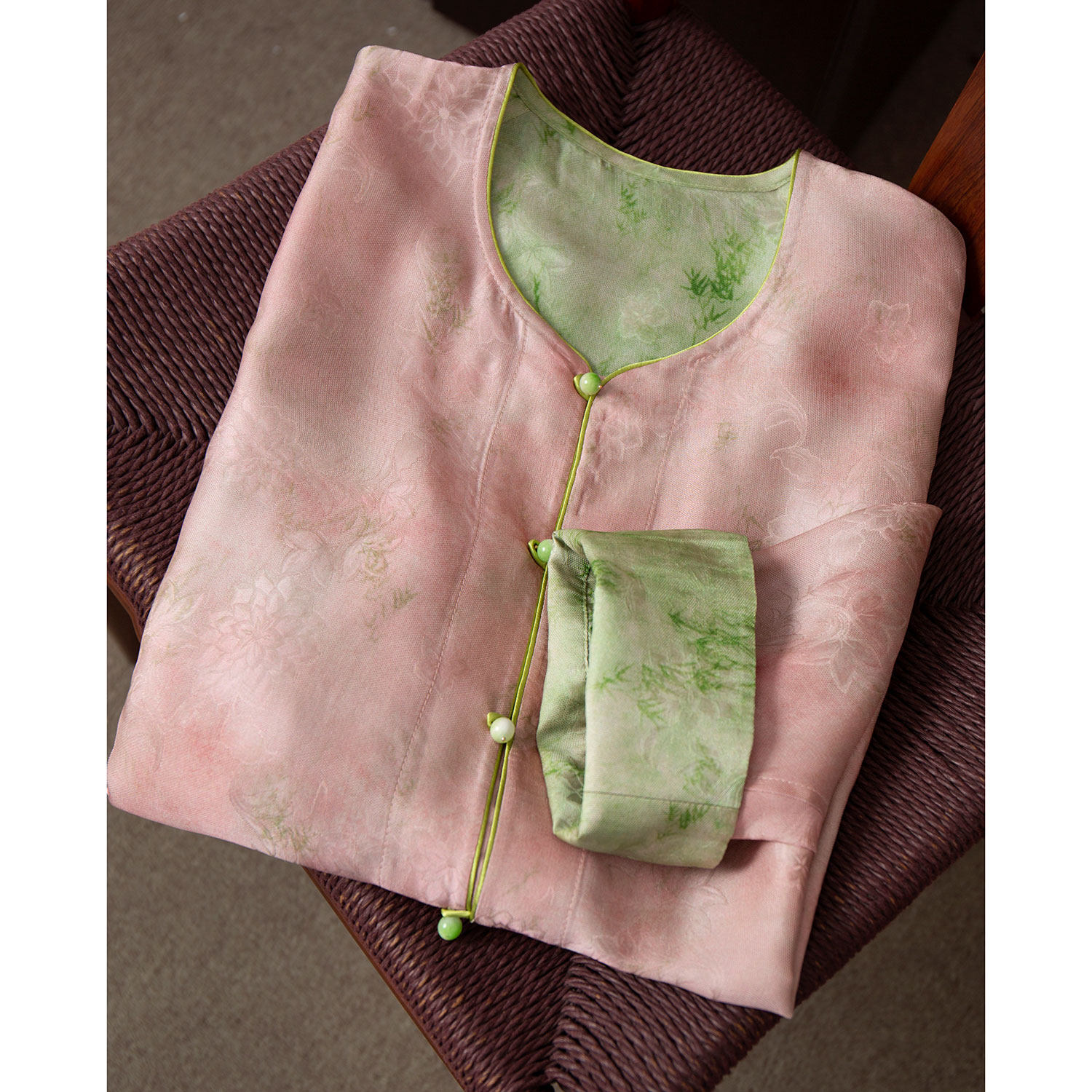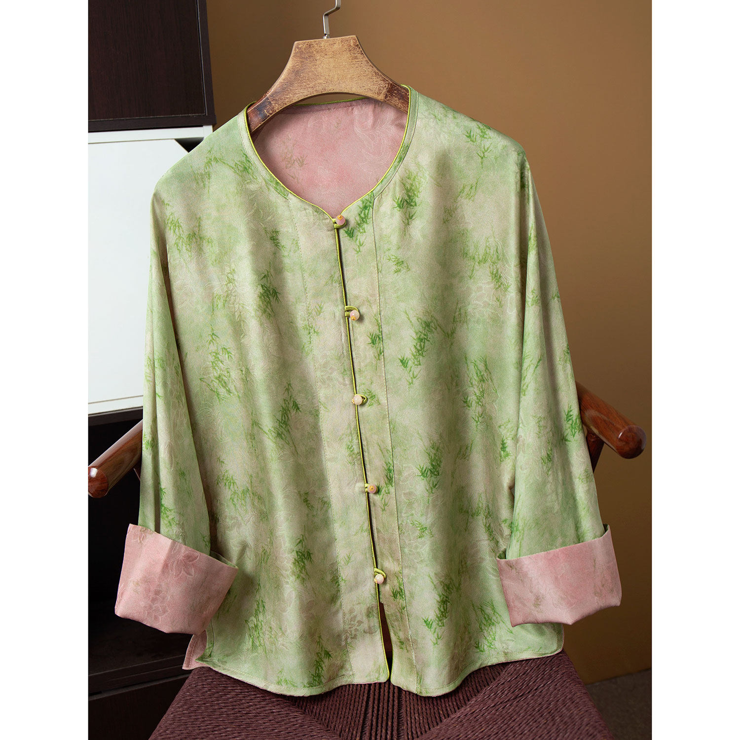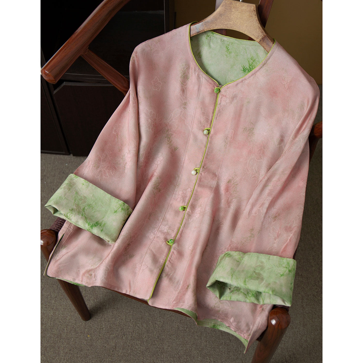 丝艺 全罗真丝绞萝桑蚕丝国风开衫 提花茶服外套女挽袖 上衣 双面穿由