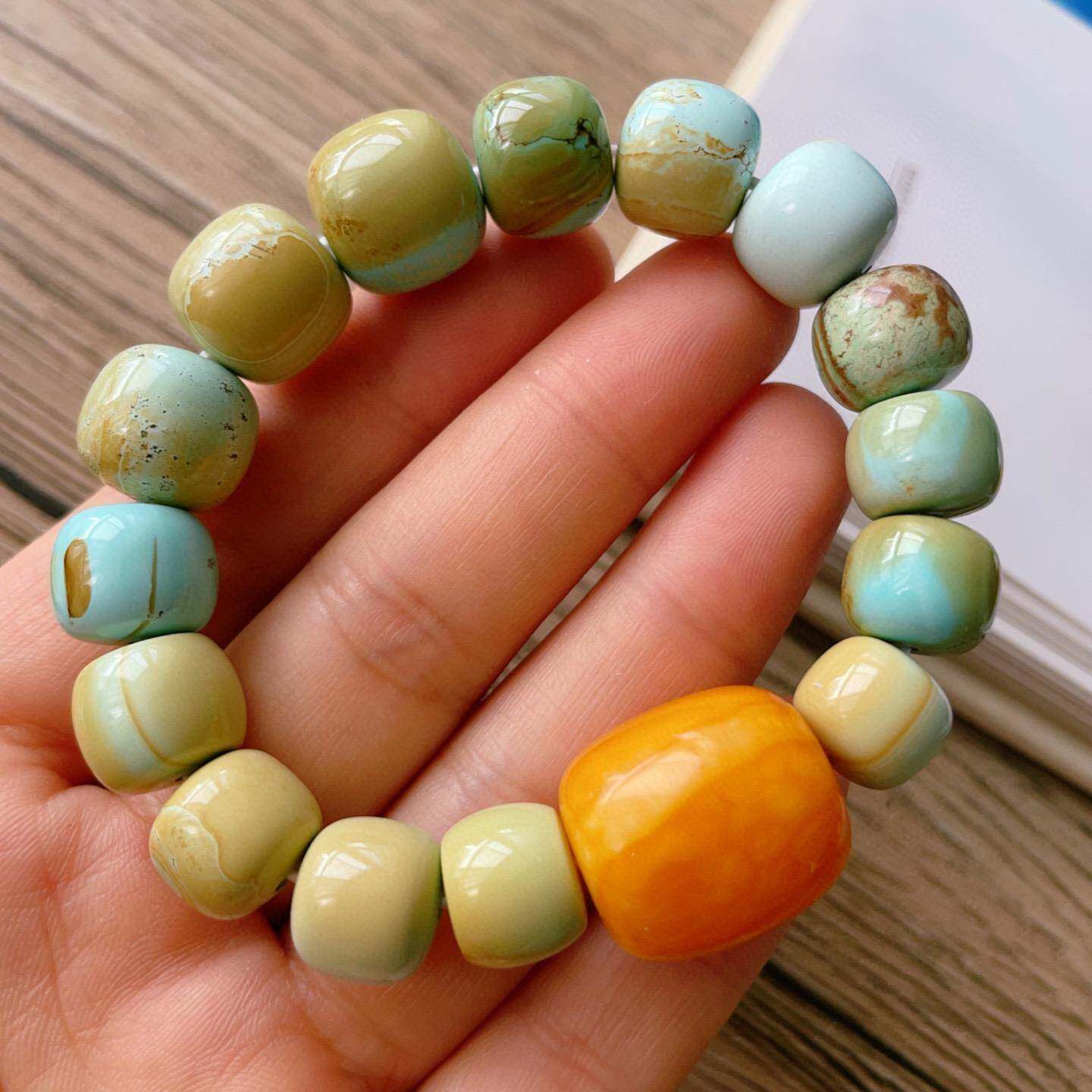 顶瓷糖果色 重42克jd0 14mm特色水波纹手链 天然湖北原矿绿松石11