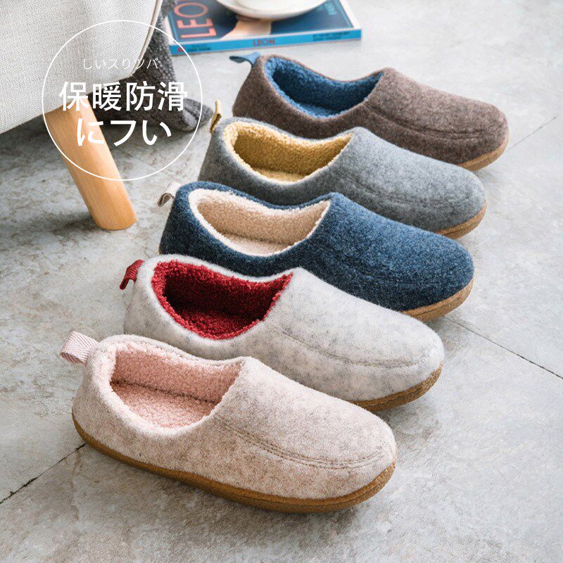 男冬家居家用室内木地板防臭保暖棉鞋 女 設計静音棉拖鞋 日本良品