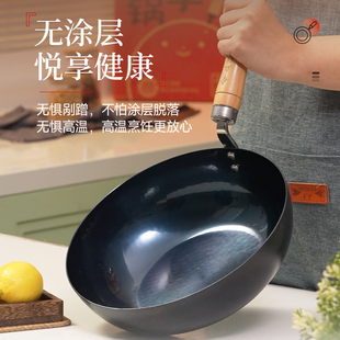 炒锅家用不粘锅无涂层燃气灶适用 章丘炒菜锅传统铁锅官方旗舰老式