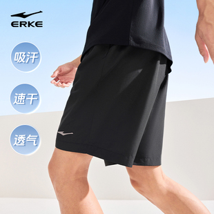 速干短裤 夏季 男士 黑色健身训练裤 跑步男裤 五分裤 鸿星尔克运动短裤