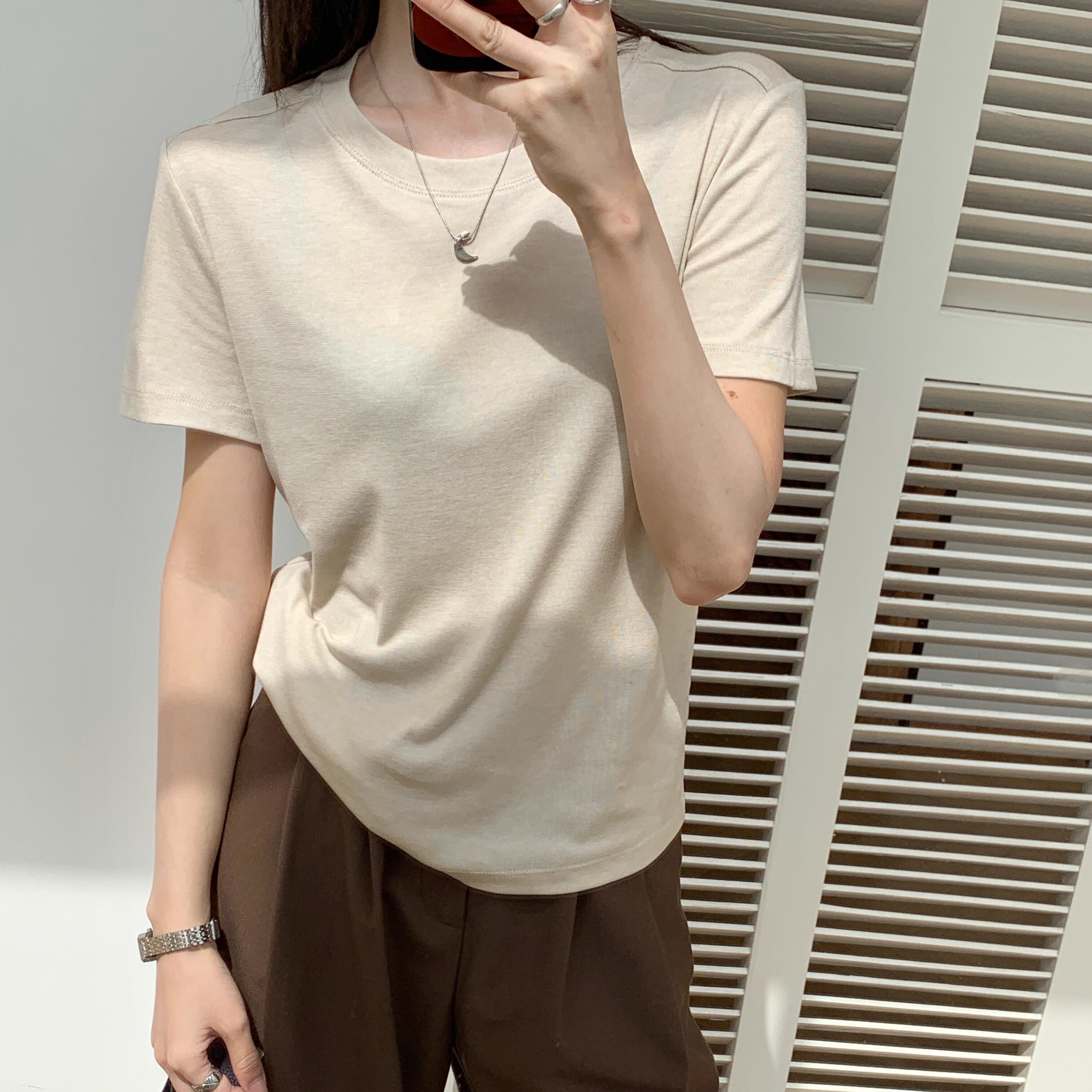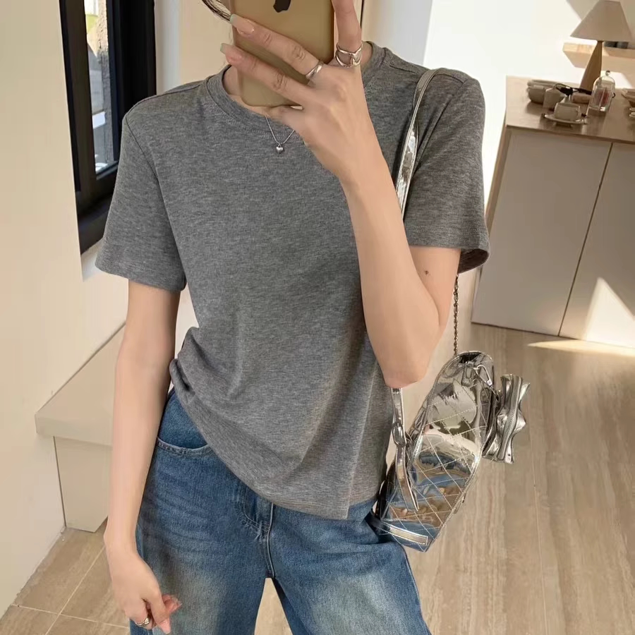 闰熙CECLLIA9090 圆领半袖 韩国面膜短袖 T恤垂坠光泽感显瘦T 7夏季