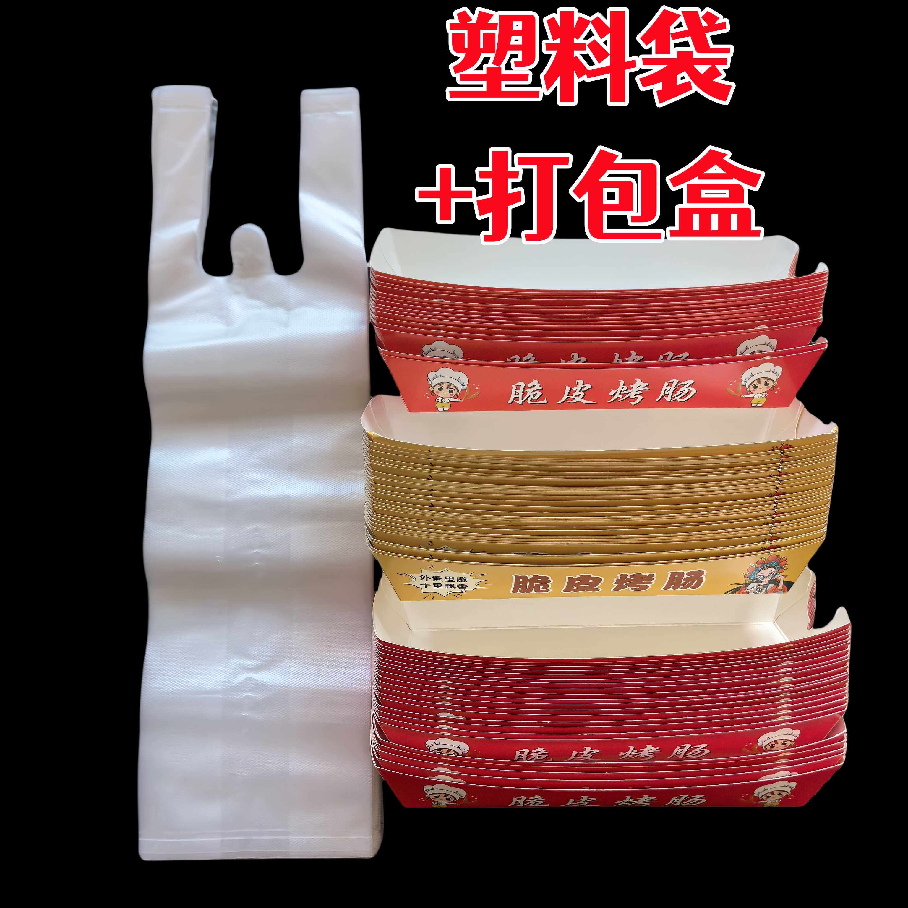 加厚加硬外卖纸盒全新料塑料袋精品竹签 烤肠打包盒塑料袋竹签套装由