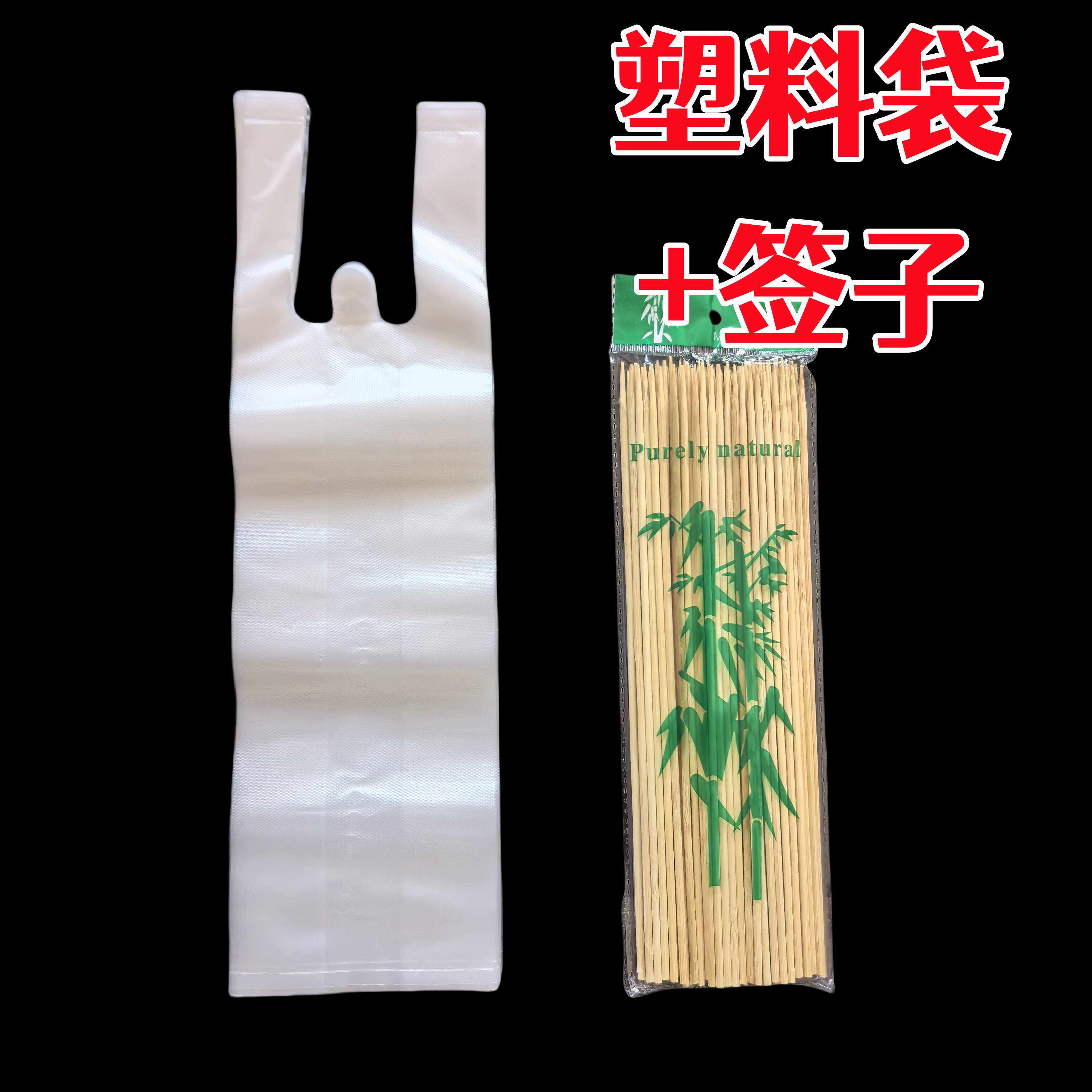 加厚加硬外卖纸盒全新料塑料袋精品竹签 烤肠打包盒塑料袋竹签套装