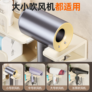 吹风机架洗脸巾收纳架子 吸盘多功能奶白牙刷置物架卫生间壁挂式由