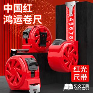 恭喜发财鸿运当头习文高精度钢卷尺5米7.5米10米加厚加硬米尺盒尺