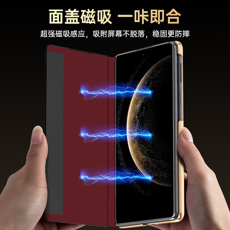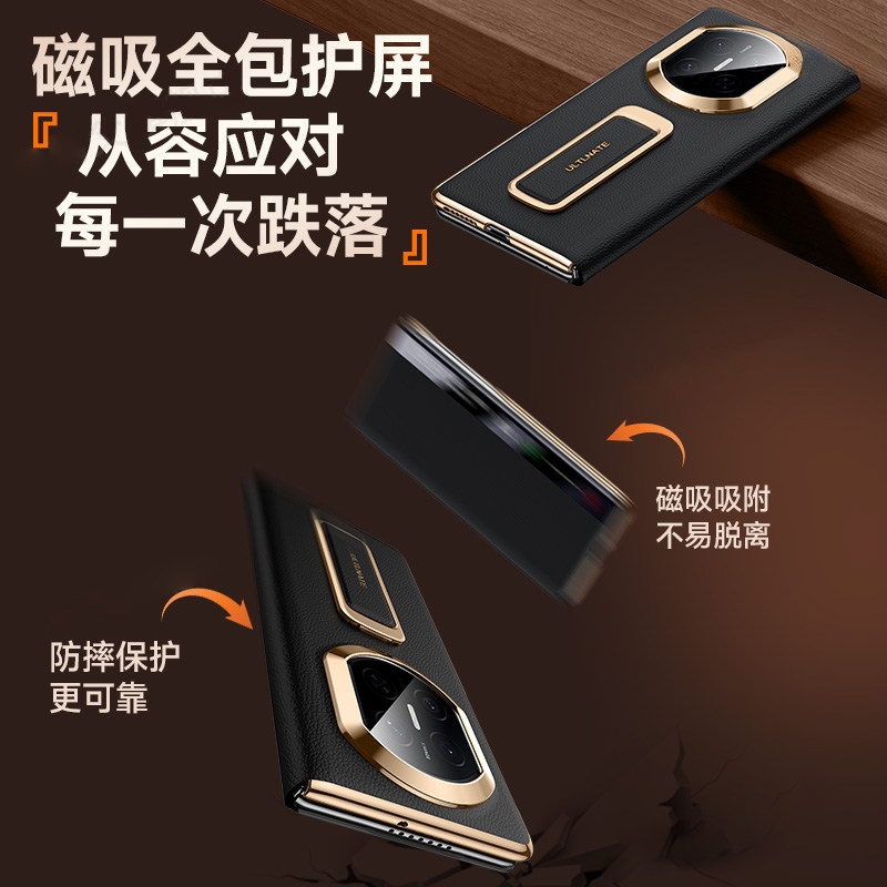 适用华为X7手机壳mateX6腕带支架智能视窗X5典藏版 镜头全包保护套 mateX3防摔磁吸翻盖潮流女款 真皮商务男款由
