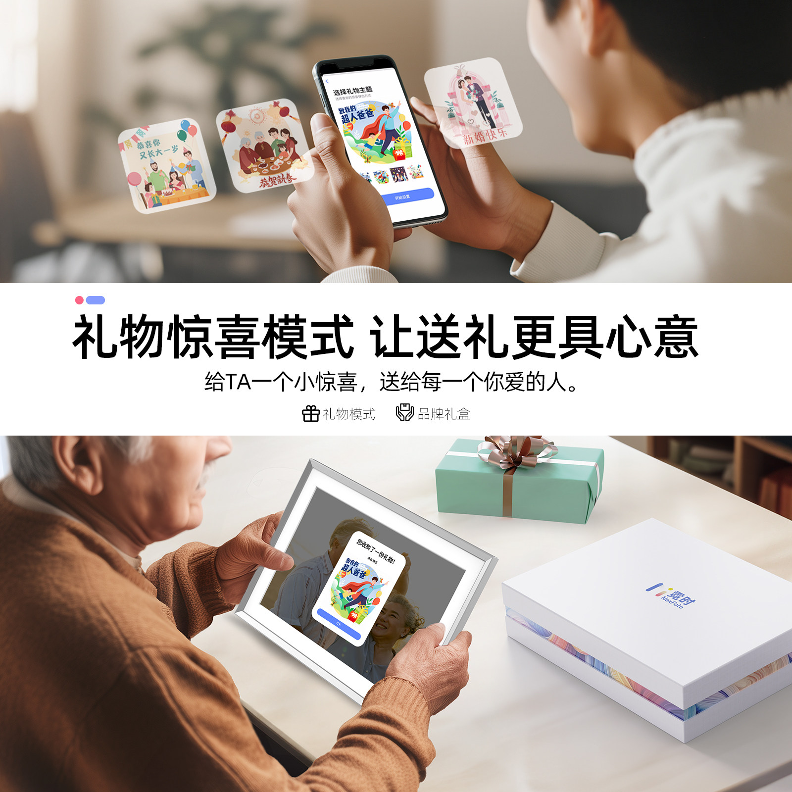 霓时数码 桌搭新婚月子乔迁订婚长辈礼物 电子相框64G触屏智能家庭共享触控相册高清云照片视频播放显示屏