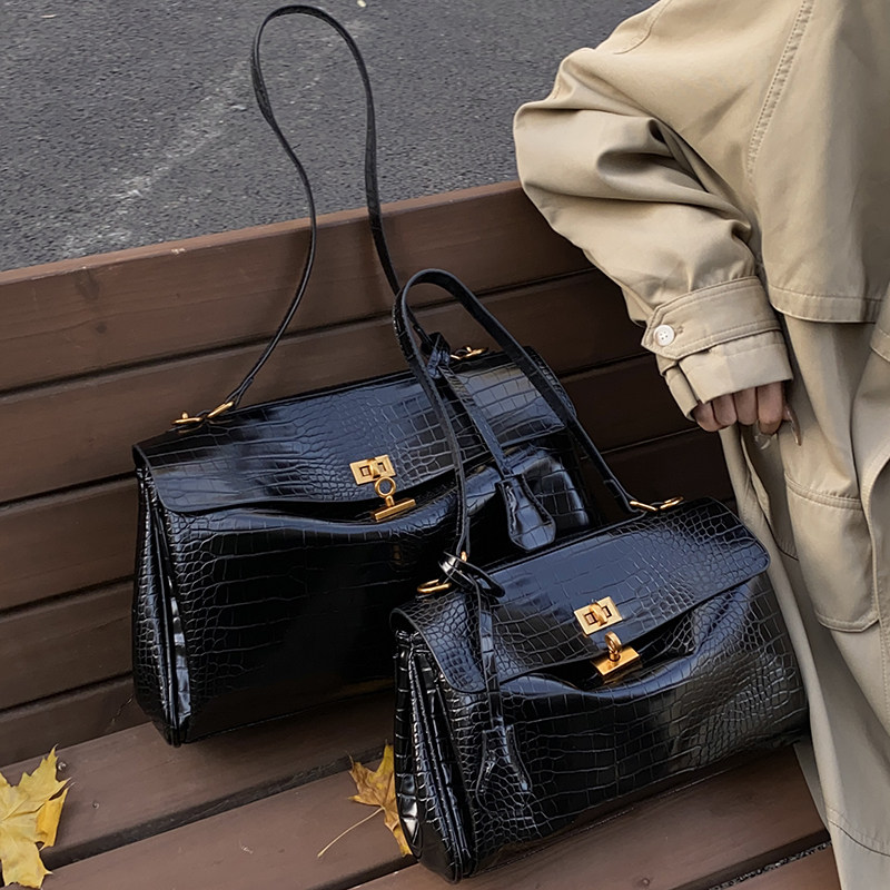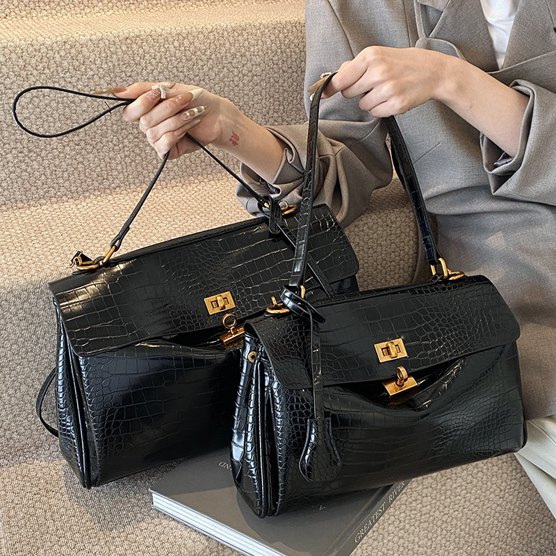 Black黑色大容量单肩包网红铂金包 高级质感托特大包女包2026新款