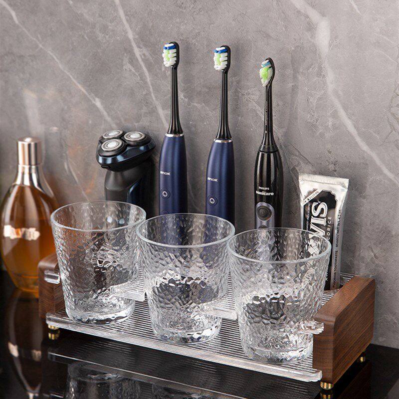 台面牙具牙杯收纳架挂架免打孔轻奢亚克力木 电动牙刷置物架壁挂式由