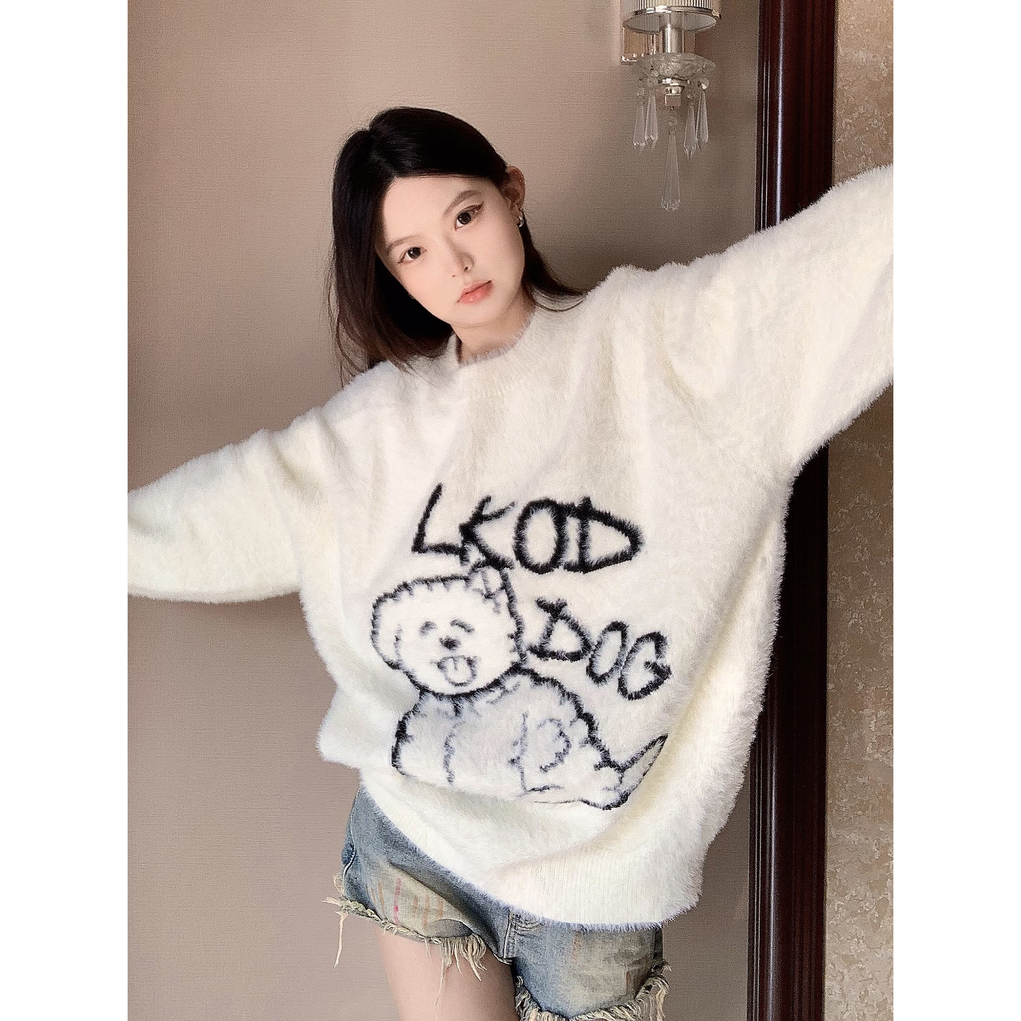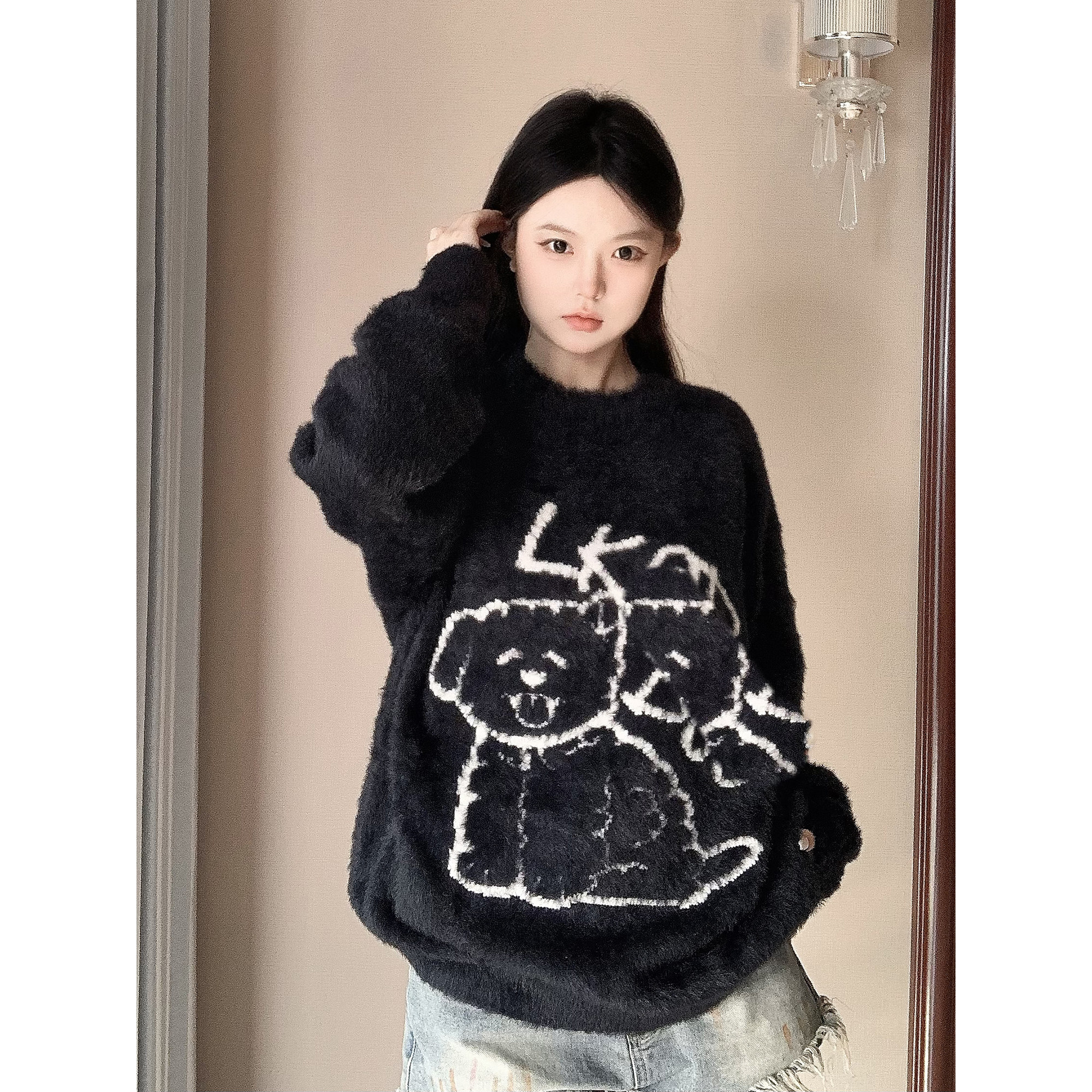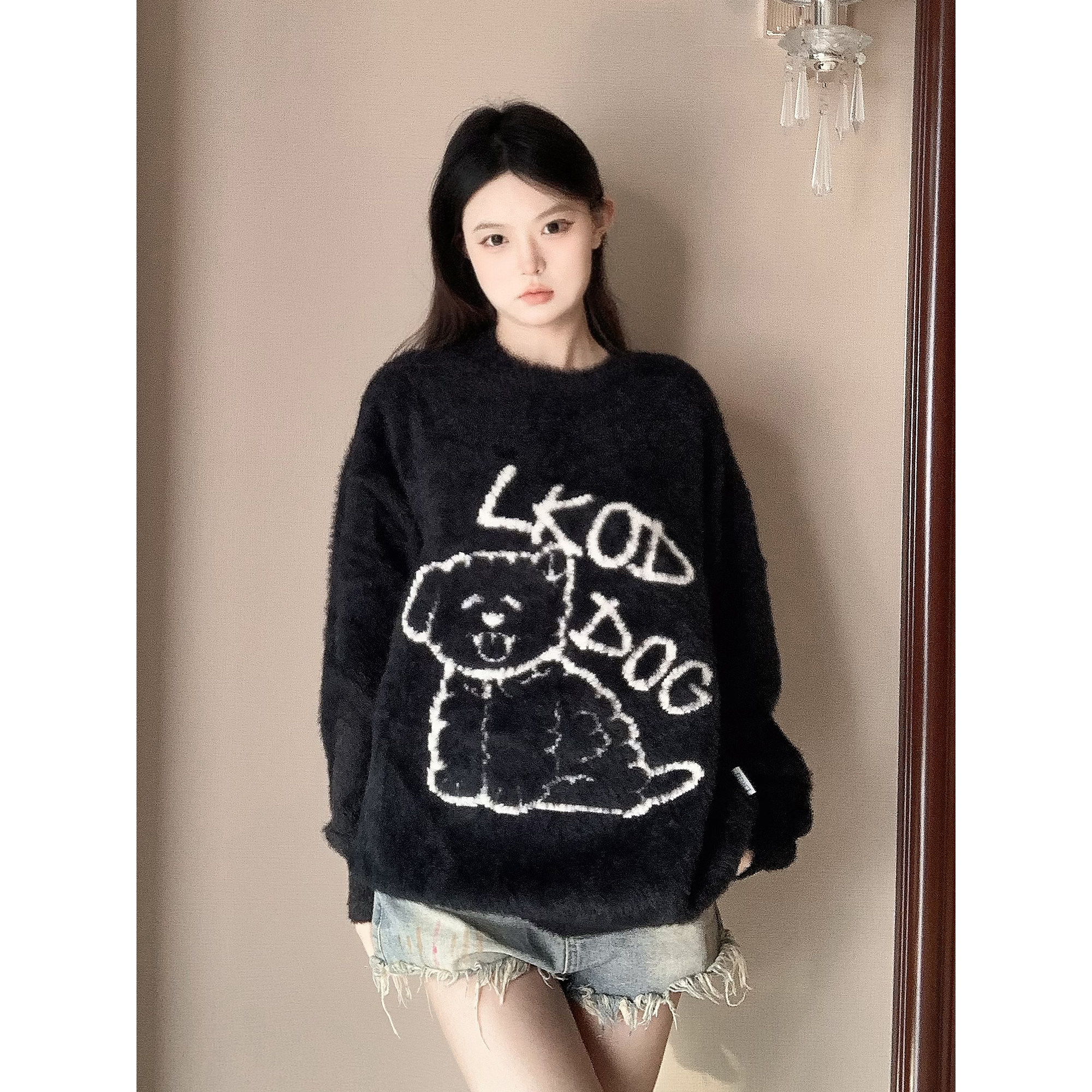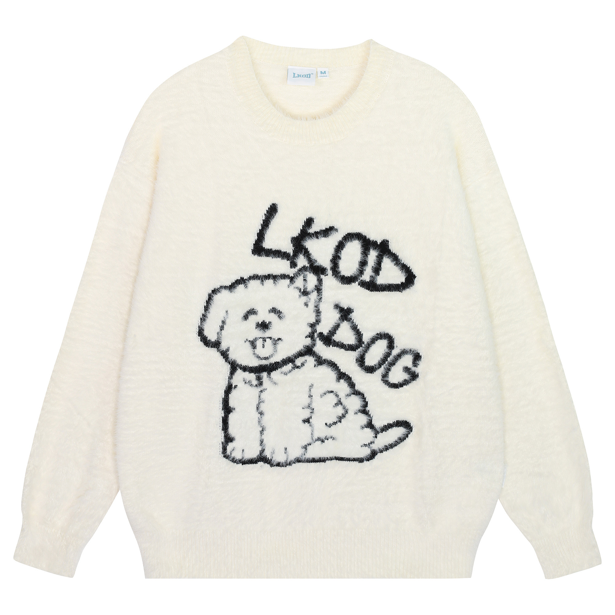 LKSTORE 海毛小狗提花毛衣男女情侣款 长袖 潮牌 LKOD2022秋冬新款