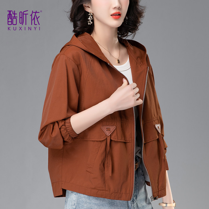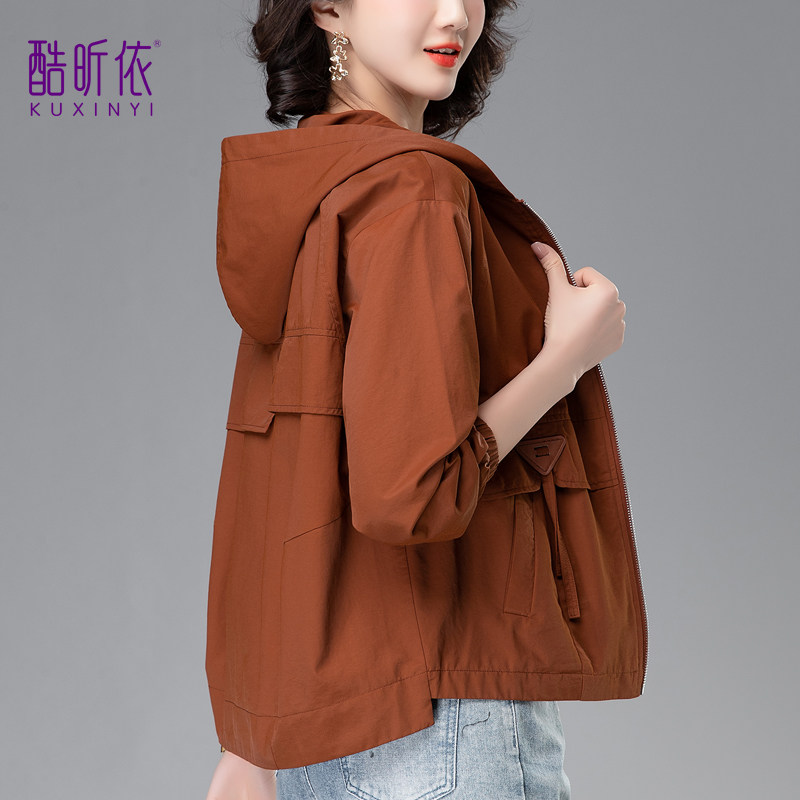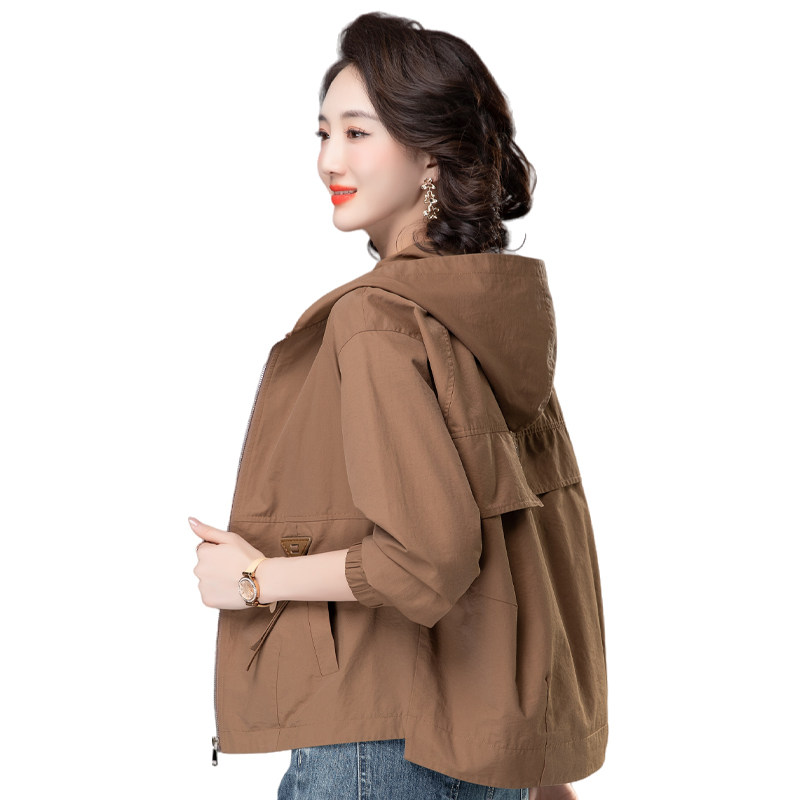洋气连帽宽松休闲冲锋衣大码 两层防水防风夹克 外套女时尚 春秋短款