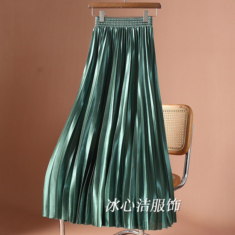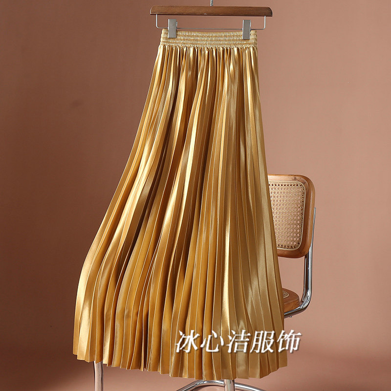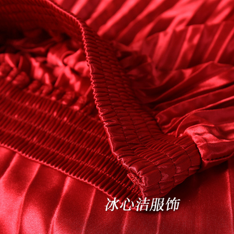 为您提供商品高腰垂感百褶裙加长裙子 红色金属感光泽闪亮半身裙女2025早春新款的详细介绍,