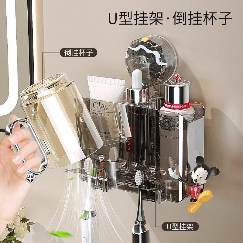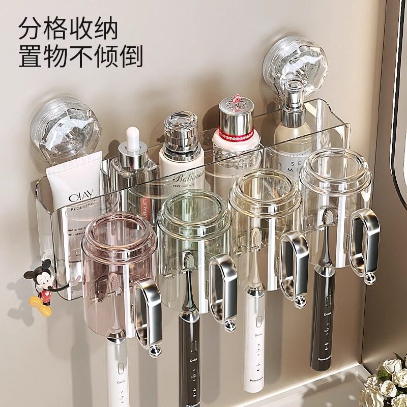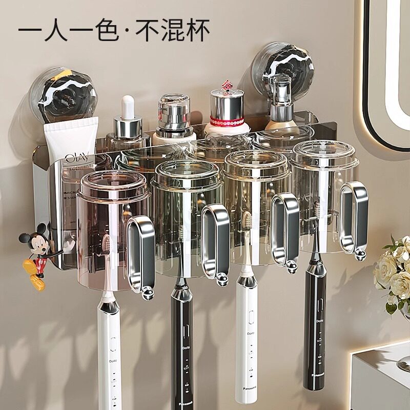 免打孔卫生间牙具座牙膏收纳浴室 牙刷牙杯壁挂置物架电动牙刷套装