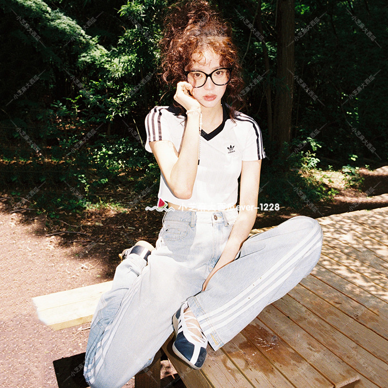 运动裤 KG0200KG0201 水洗牛仔布弯刀裤 adidas三叶草欧阳娜娜同款