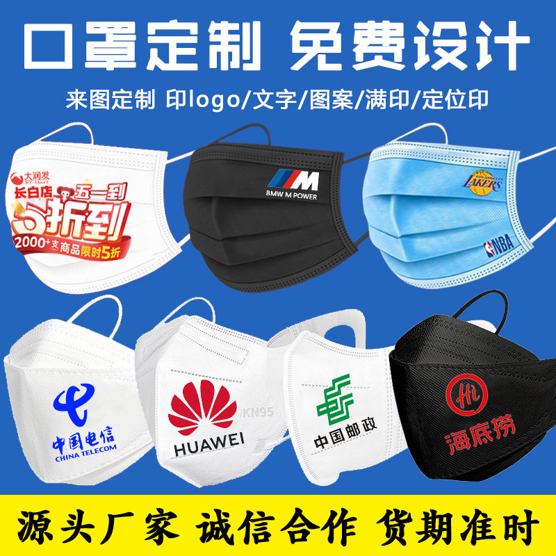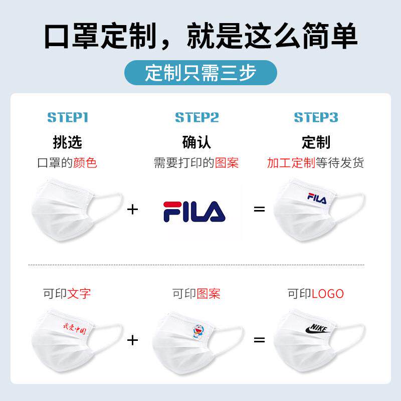 印定位印图案印文字公司企业广告宣传 一次性口罩定制logo满印数码
