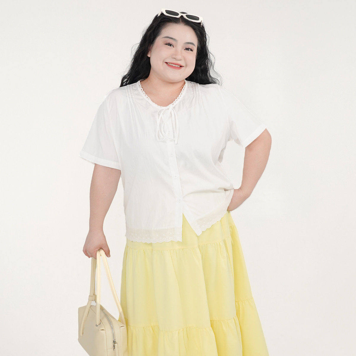 显瘦胖MM新款 福饮沸别 蓝梦花韵 大码 上衣2137 甜美系带花边短袖