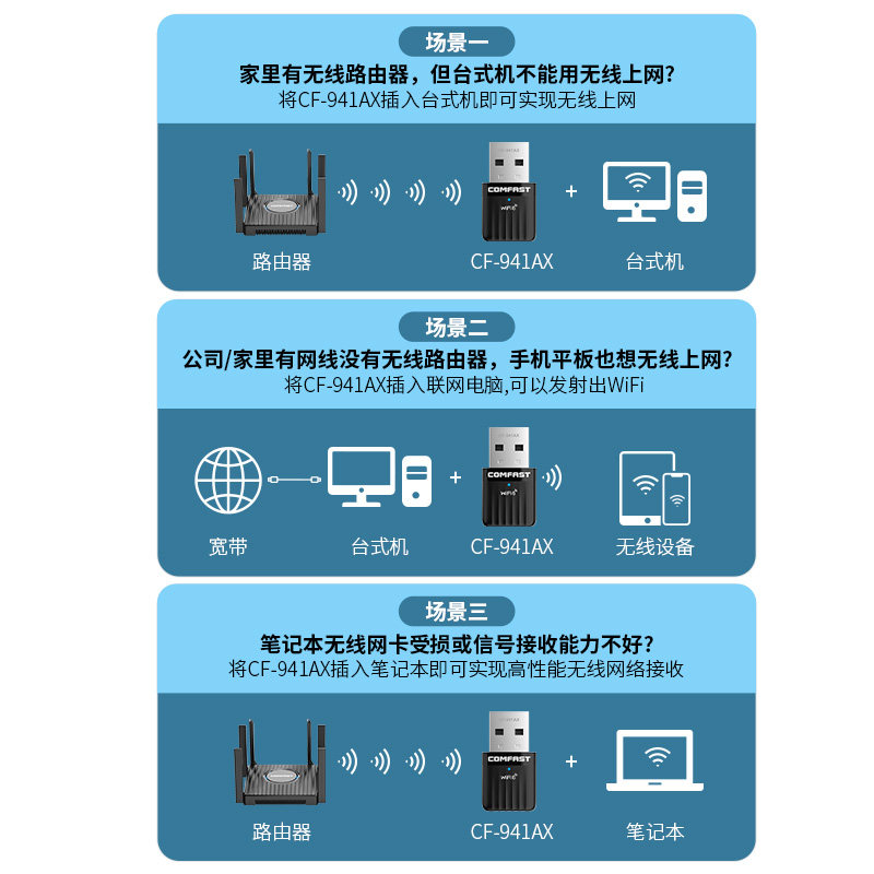 为您提供商品机笔记本电脑连接热点外置网络外接600M迷你信号CF 941AX 免驱动WiFi6无线网卡USB接口接收发射器台式 COMFAST的详细介绍,