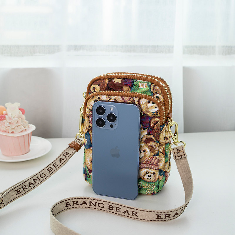 洋气百搭手机包女斜挎单肩跑步手机腰包 小熊依恋三层刺绣小包新款由