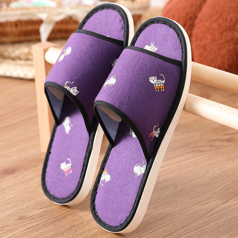 女春秋款 吸汗脚亚麻卡通可爱办公室内居家地板 通用棉麻布拖鞋 四季