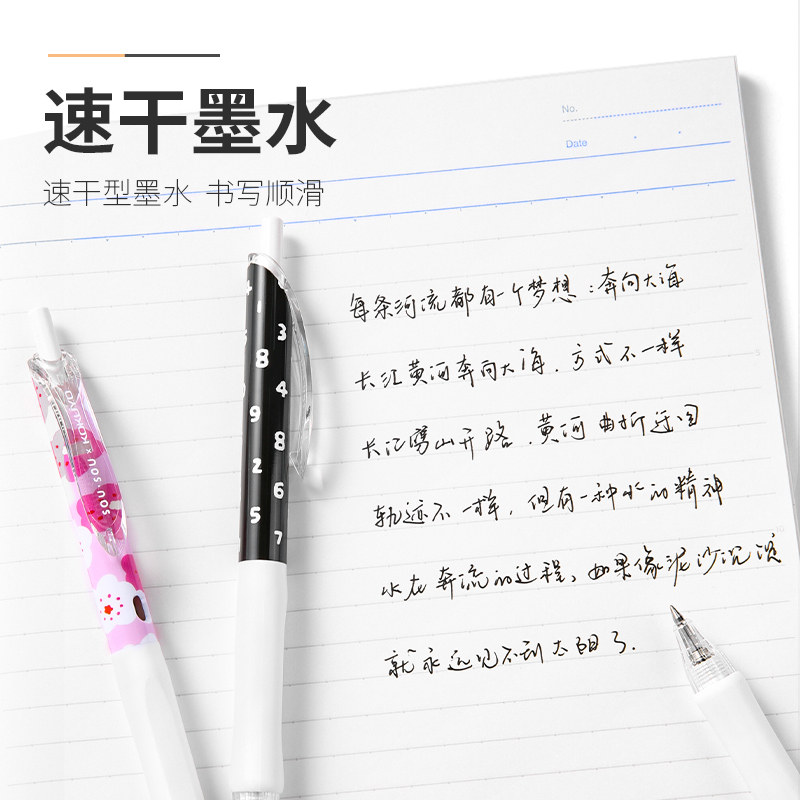 云握ST中性笔刷题笔速干按动水性笔舒适云握手软胶学生练字黑笔