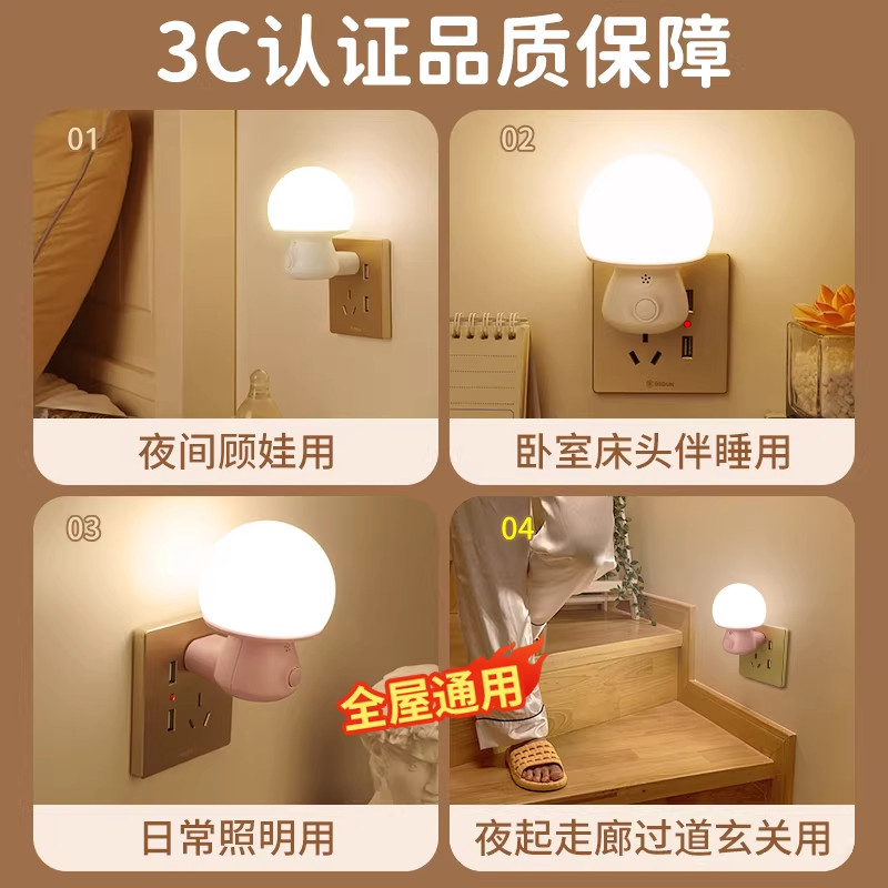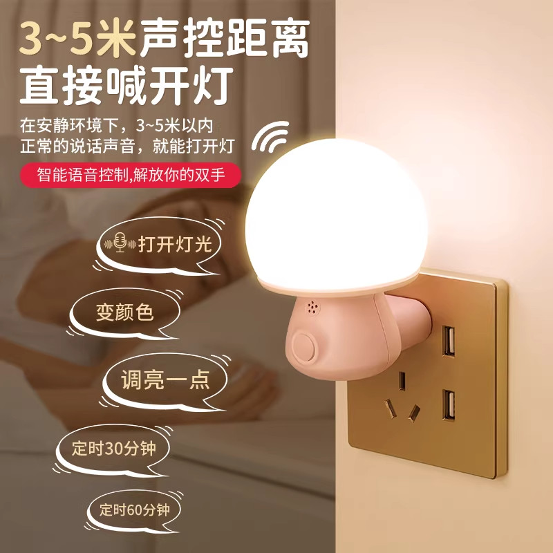 床头卧室睡眠灯婴儿喂奶护眼语音控制老人起夜间节能小夜灯插电款