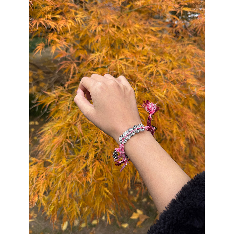 Tagi.塔皮金币五帝钱手工编织流苏爱心原创设计调节手链礼物手串