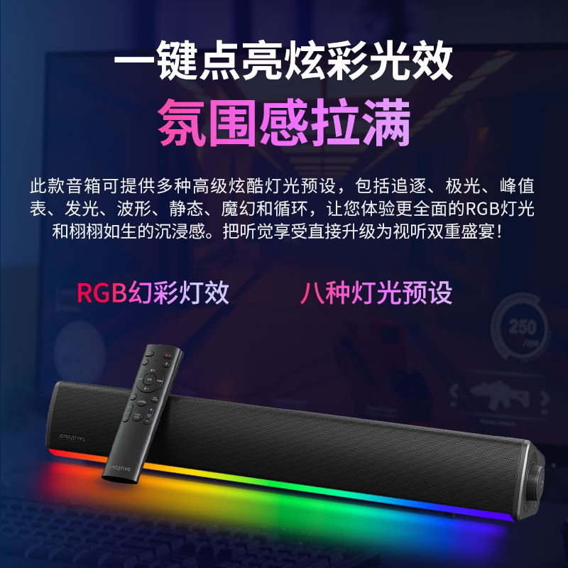 创新GS5电脑音响 家用游戏电竞桌面有线蓝牙一体插电长条音箱 台式