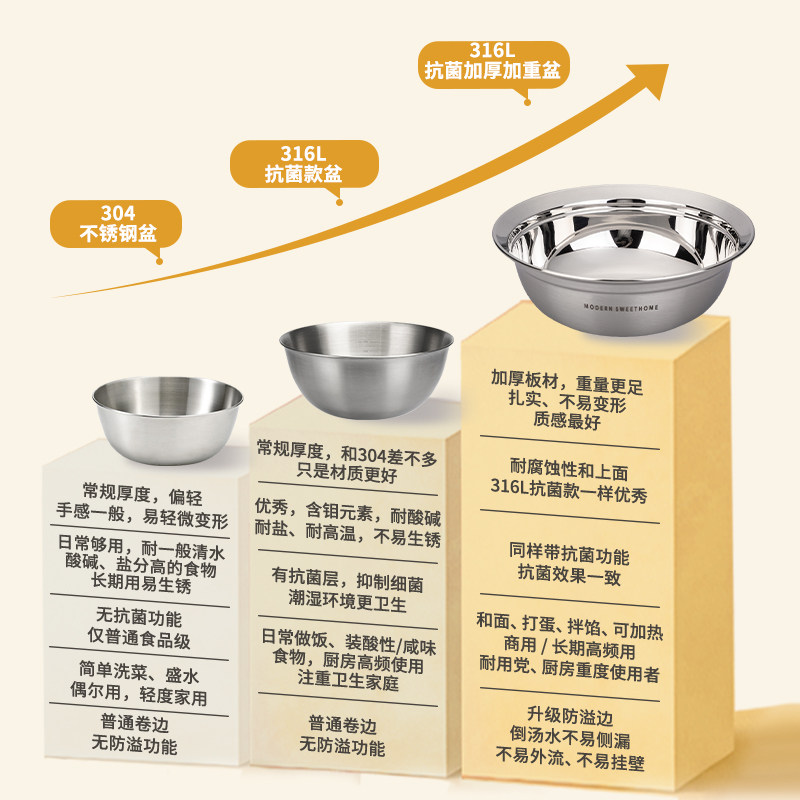 为您提供商品摩登主妇316L食品级不锈钢盆饭碗打蛋和面盆洗菜盆汤碗套娃盆套装的详细介绍,