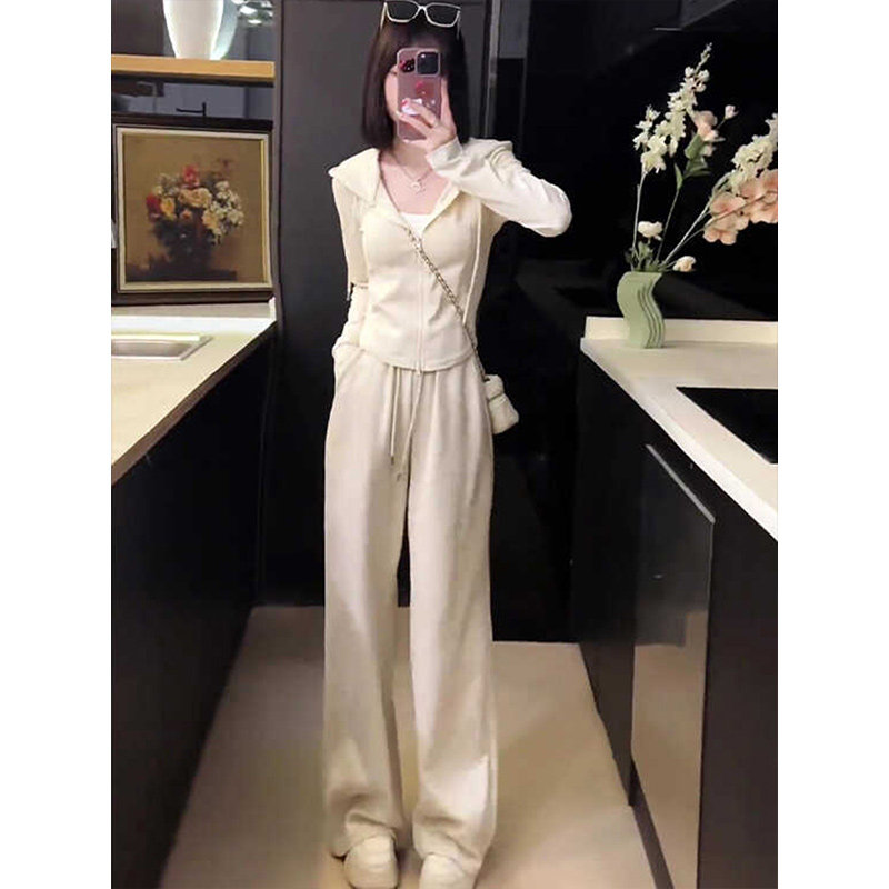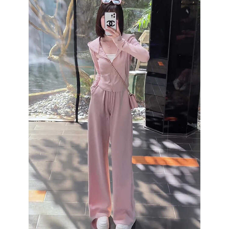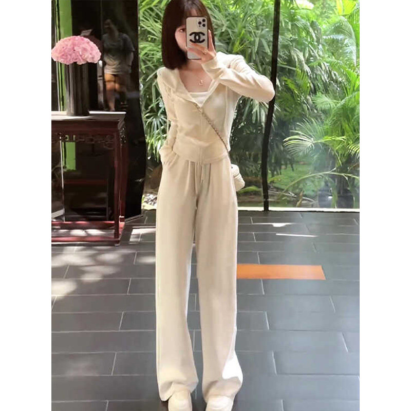 连帽拉链开衫 小个子休闲运动风套装 2026早春新款 修身 两件套 阔腿裤