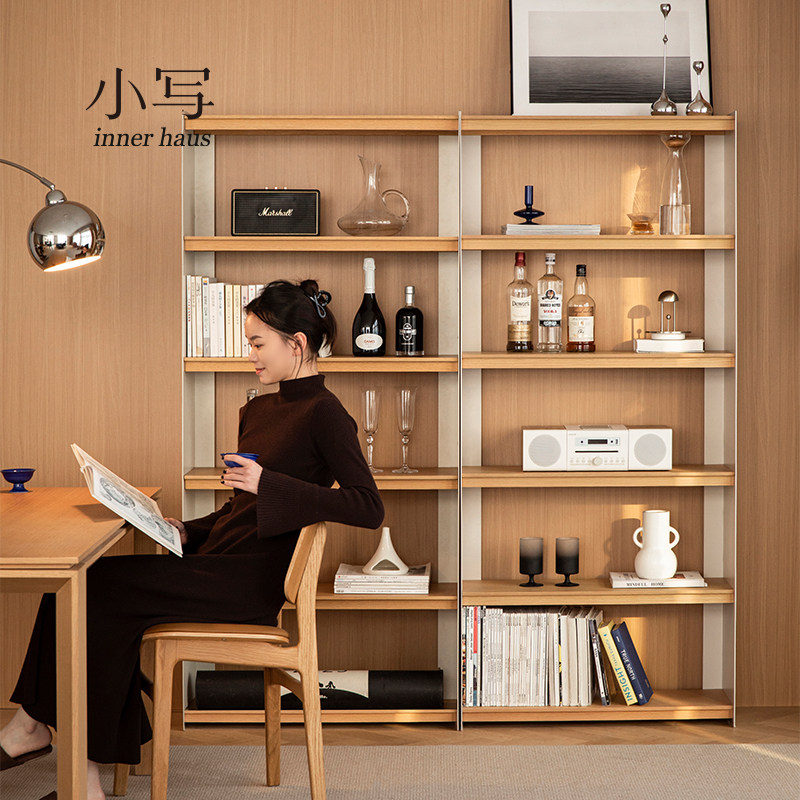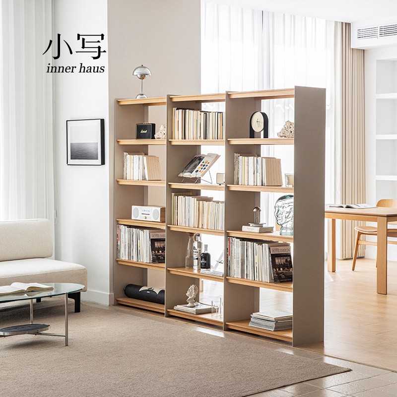 原木色拼色一体靠墙收纳书柜子 小写inner实木书架落地置物架日式