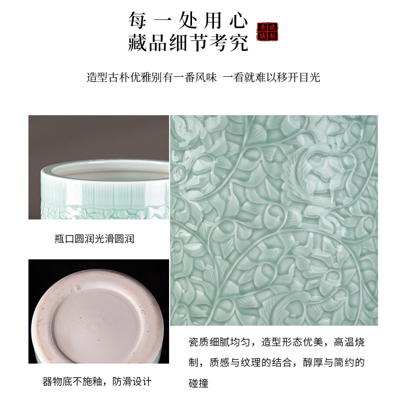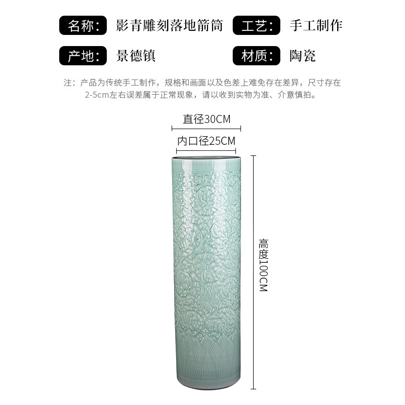 为您提供商品饰品瓷瓶摆件 景德镇陶瓷器落地大花瓶手工雕刻青瓷箭筒客厅公司装的详细介绍,