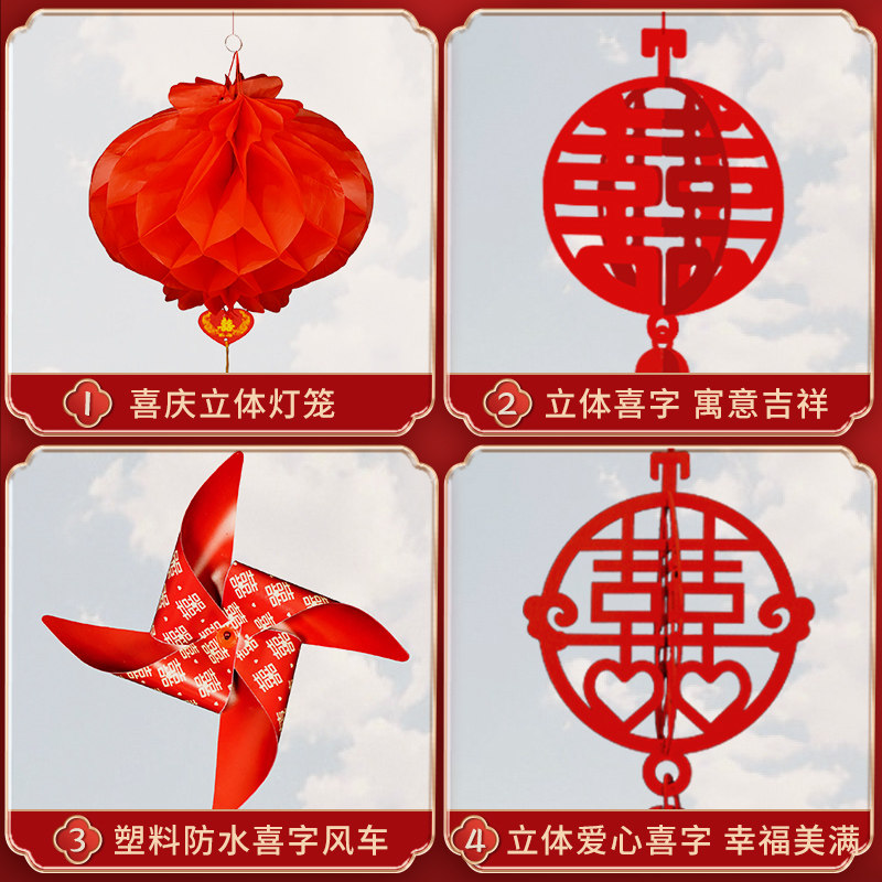 饰结婚彩旗灯笼风车婚礼农村庭院布置喜字拉花婚庆用品大全 院子装