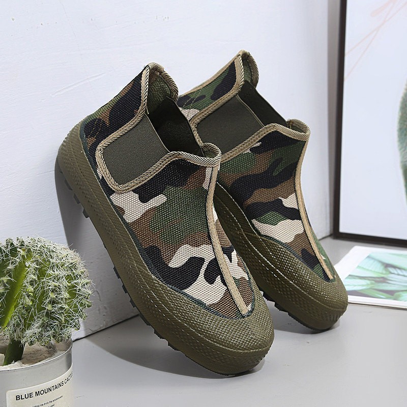 高帮布鞋 解放鞋 迷彩 登山防滑耐磨低帮鞋 工作鞋 劳保鞋 男女工地胶鞋