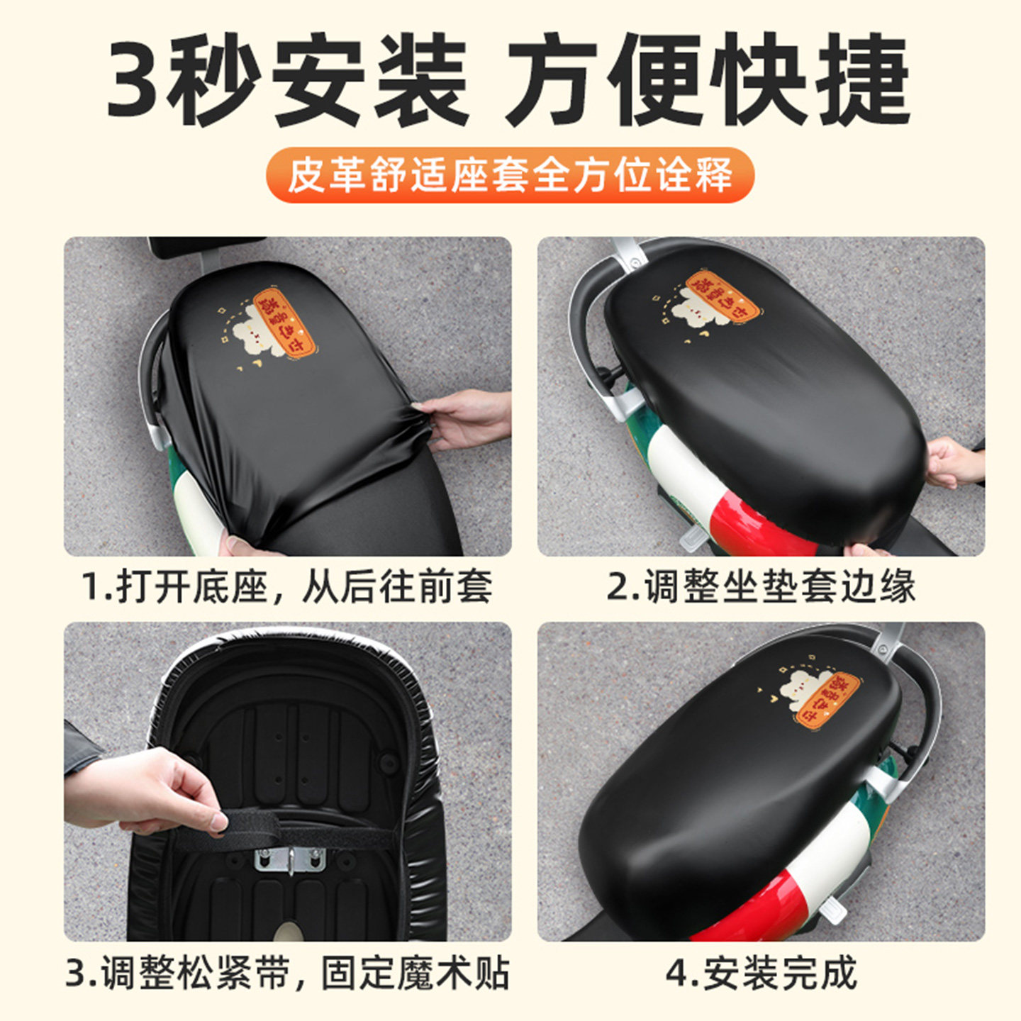 电动车座套电瓶车坐垫套防水防晒PU皮革座套适用座椅通用脚垫