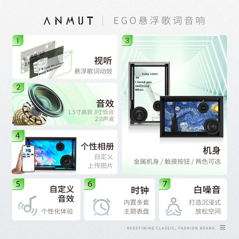 为您提供商品EGO悬浮透明歌词音响字幕复古蓝牙音箱HIFI氛围感生日礼物 ANMUT的详细介绍,