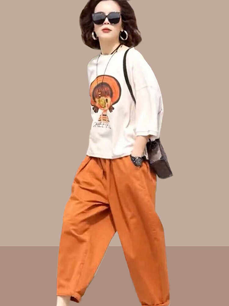 休闲套装 2025夏季 女士时尚 哈伦裤 两件套装 短袖 新款 洋气宽松大码