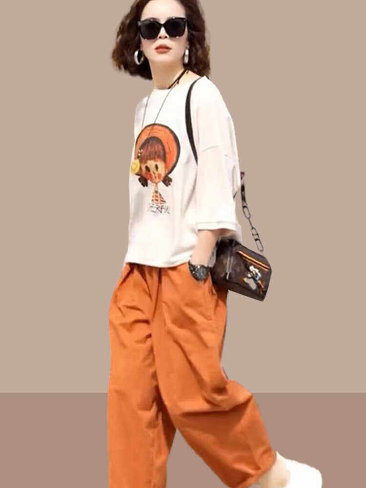 休闲套装 2025夏季 女士时尚 哈伦裤 两件套装 短袖 新款 洋气宽松大码由