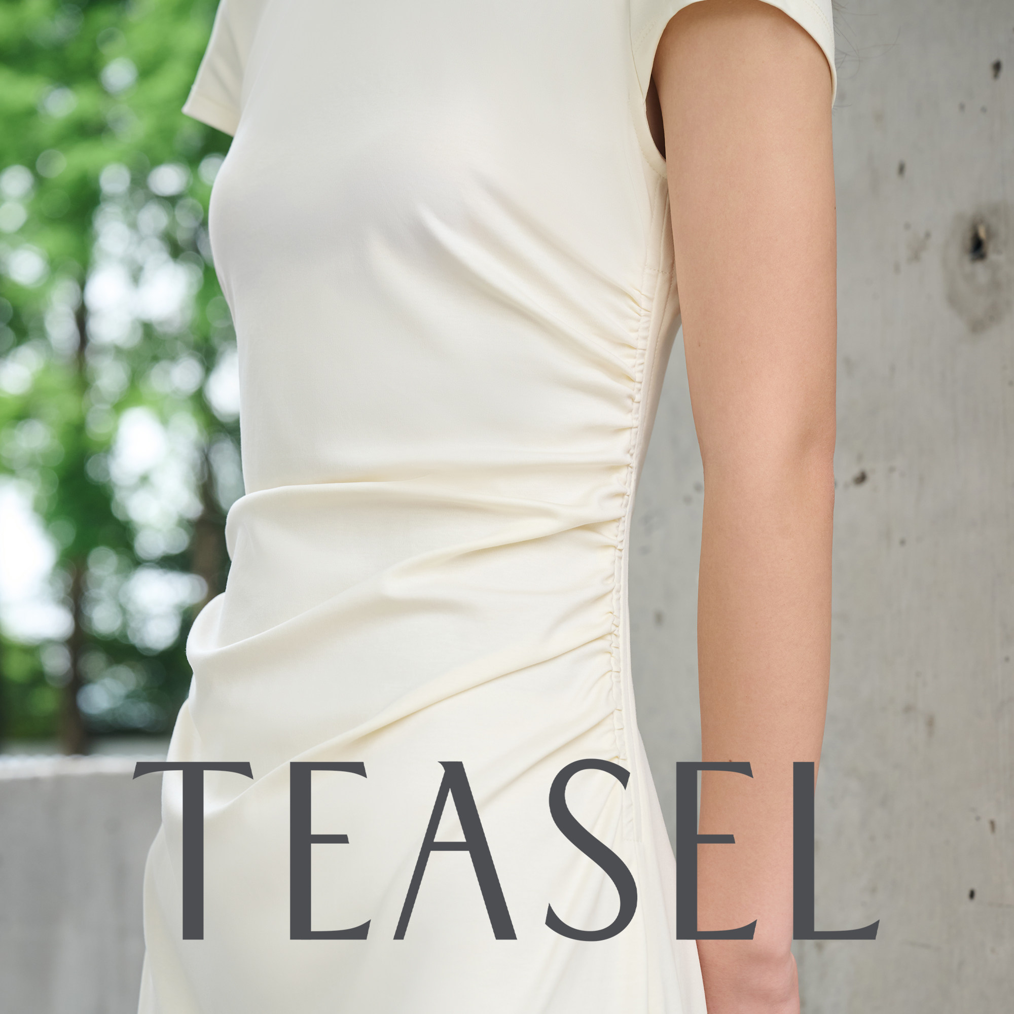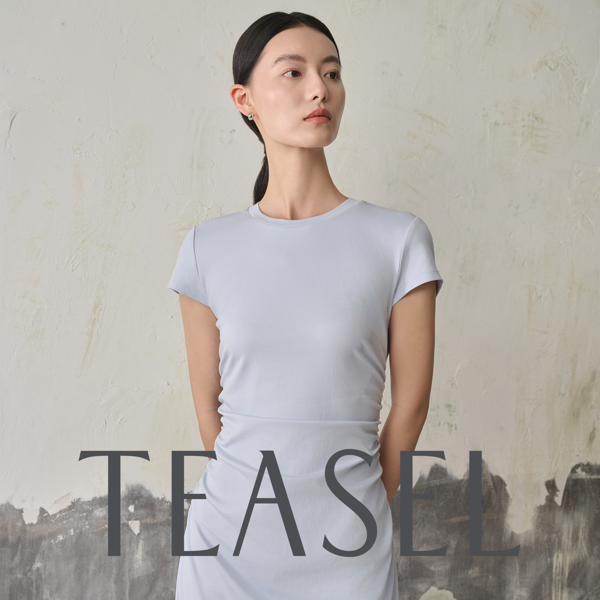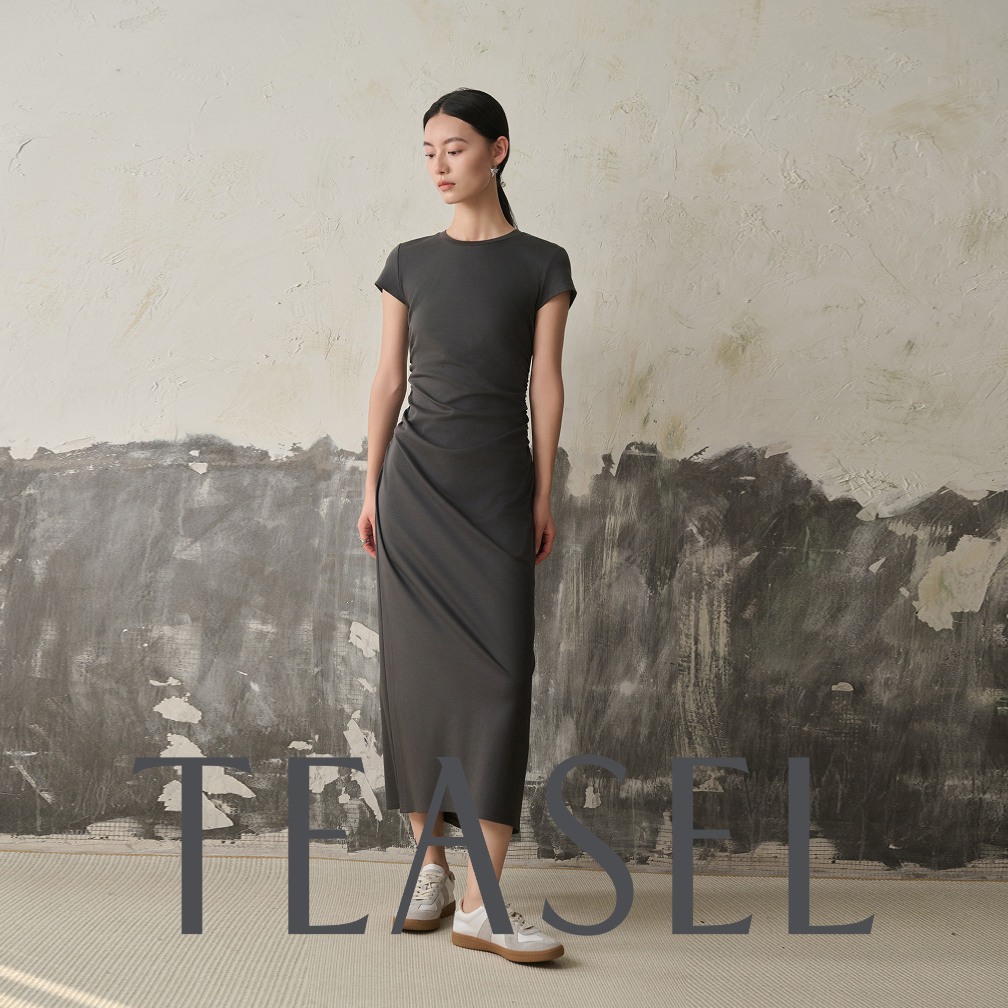 TEASEL「与海相处」高知分子通勤捏褶小蛮腰弹力长绒棉针织连衣裙由