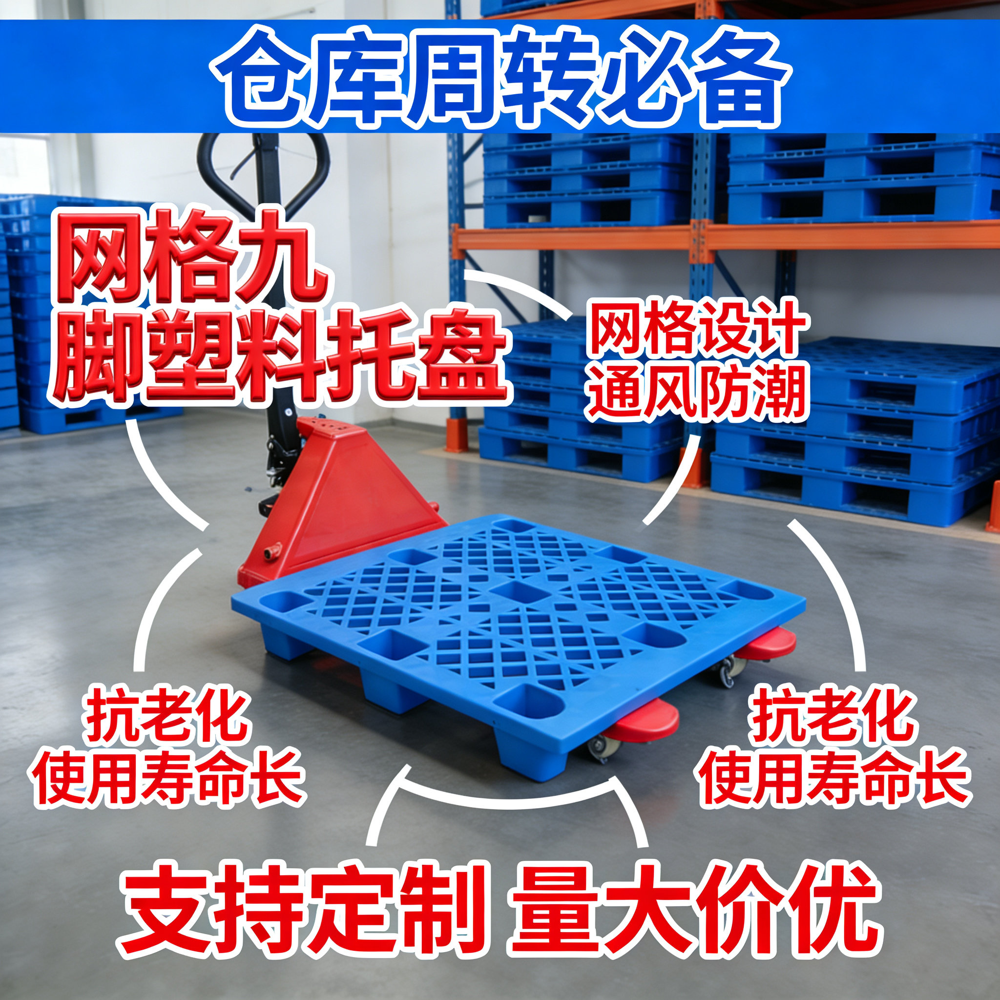 为您提供商品塑料托盘叉车仓库防潮垫板网格九脚地垫地台板货物离地架卡板栈板的详细介绍,