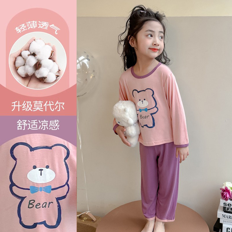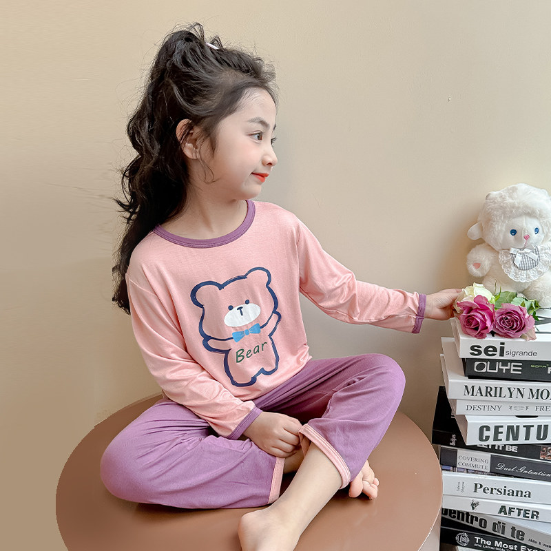 夏季 清仓 薄款 春季 no退no换 女童睡衣莫代尔春秋儿童家居服套装