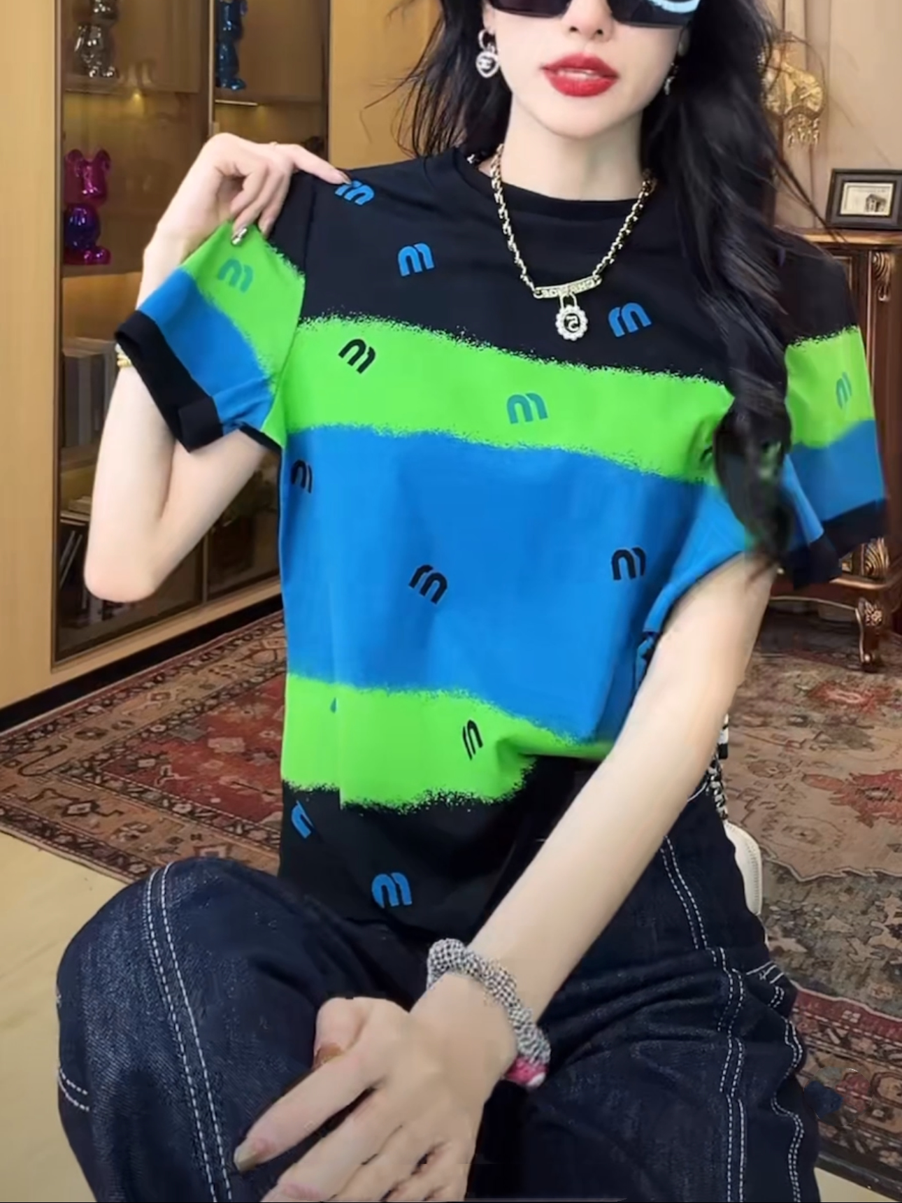 为您提供商品潮牌撞色字母印花短袖 新款 时尚 百搭显瘦圆领上衣ins T恤女2026夏季的详细介绍,